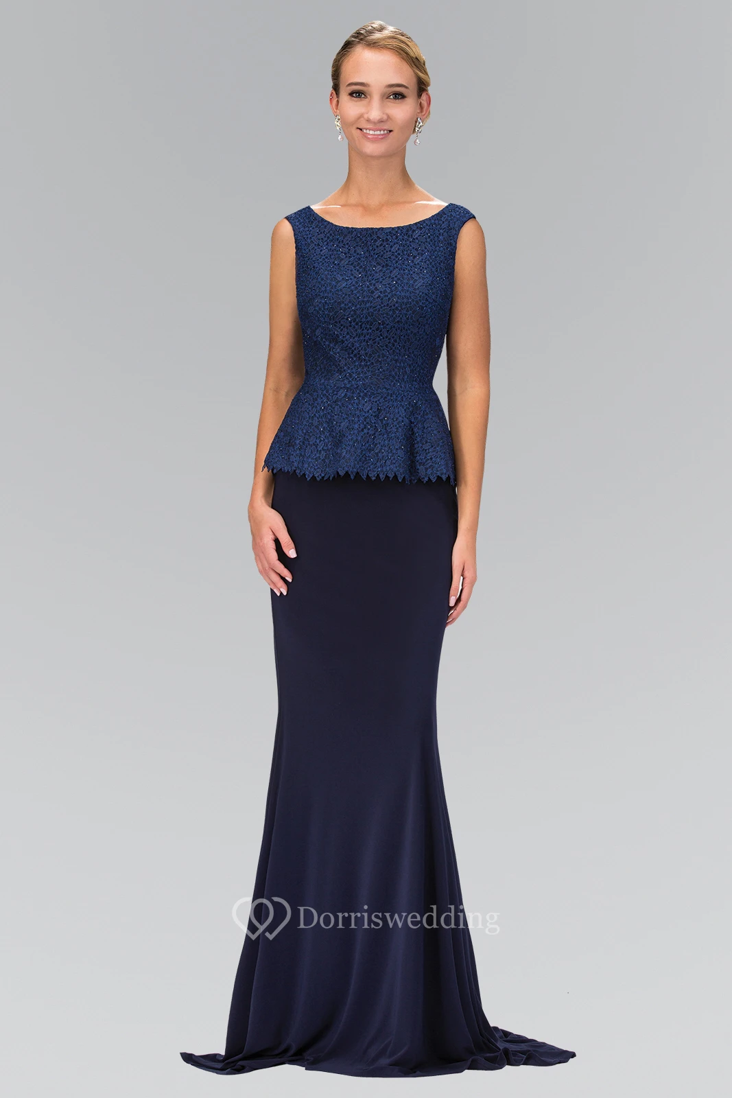 Sheath Floor-Length Scoop-Neck Sleeveless Jersey Dress With Peplum