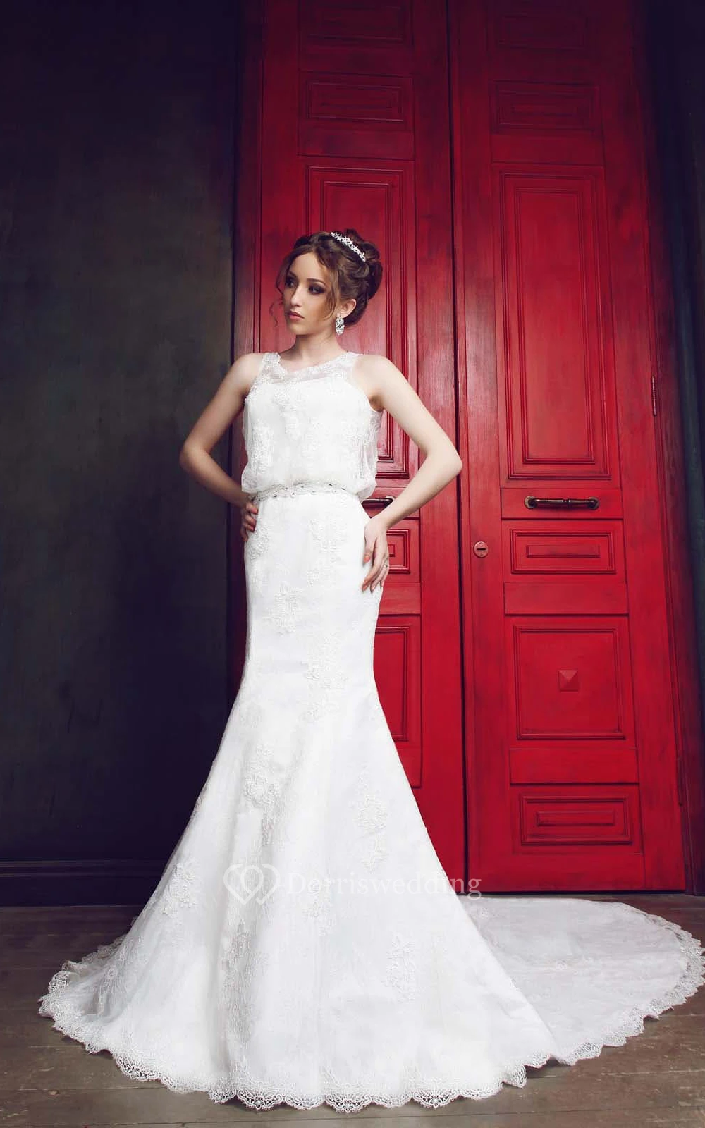• Hemline/Train: Floor-length, Cathedral Train