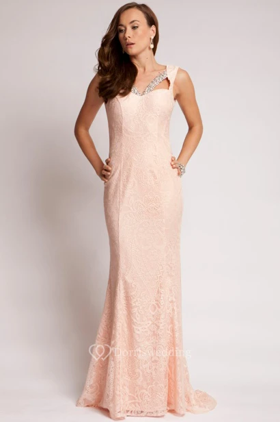 Sheath Floor-Length Sleeveless Beaded Lace Prom Dress