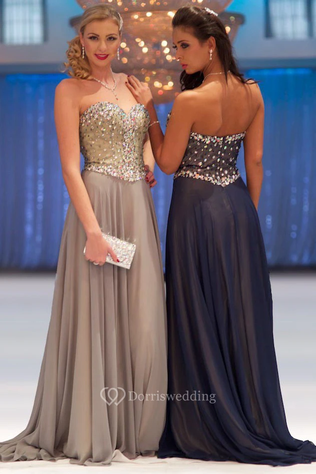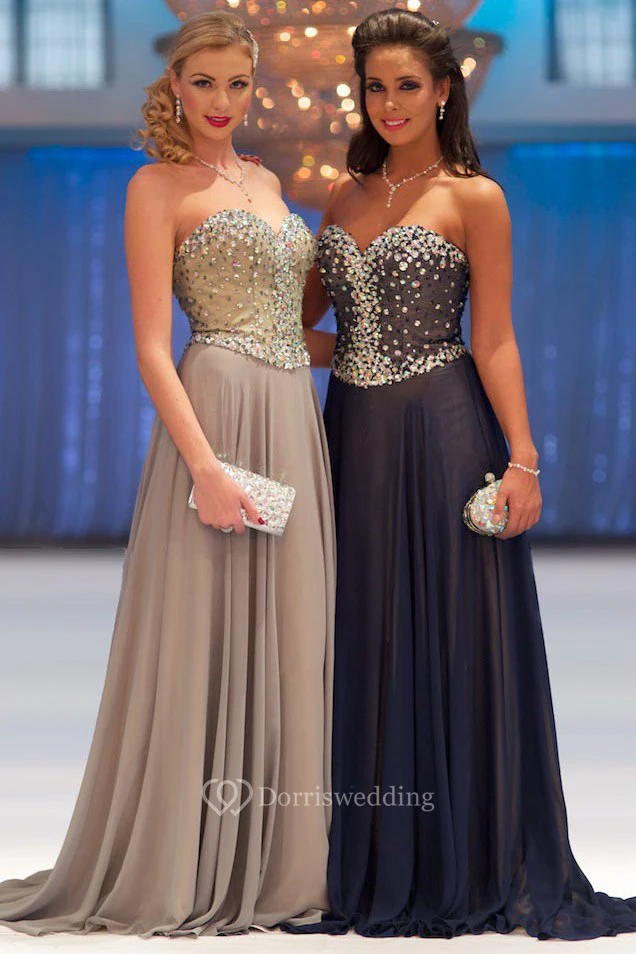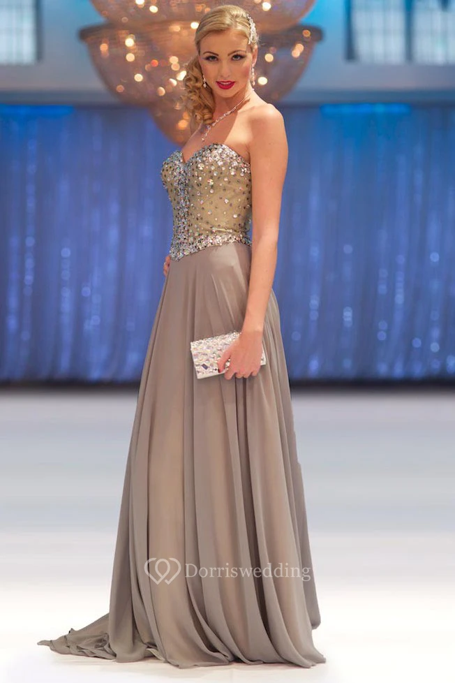 Sheath Floor-Length Sleeveless Beaded Sweetheart Chiffon Prom Dress With Pleats