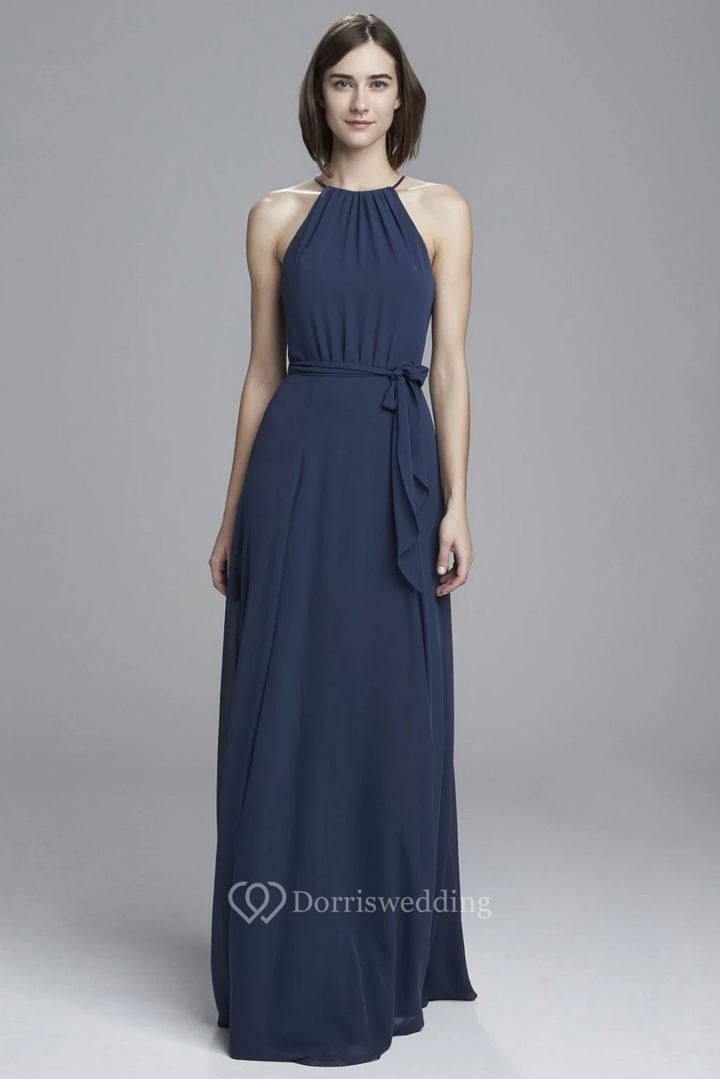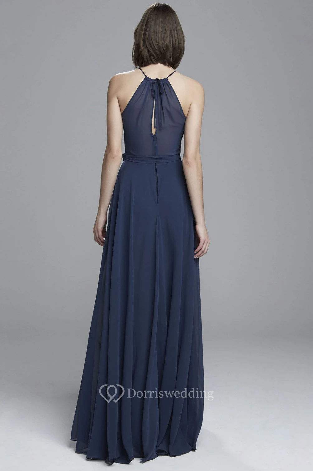Sheath Floor-Length Sleeveless Ruched High-Neck Chiffon Bridesmaid Dress With Draping