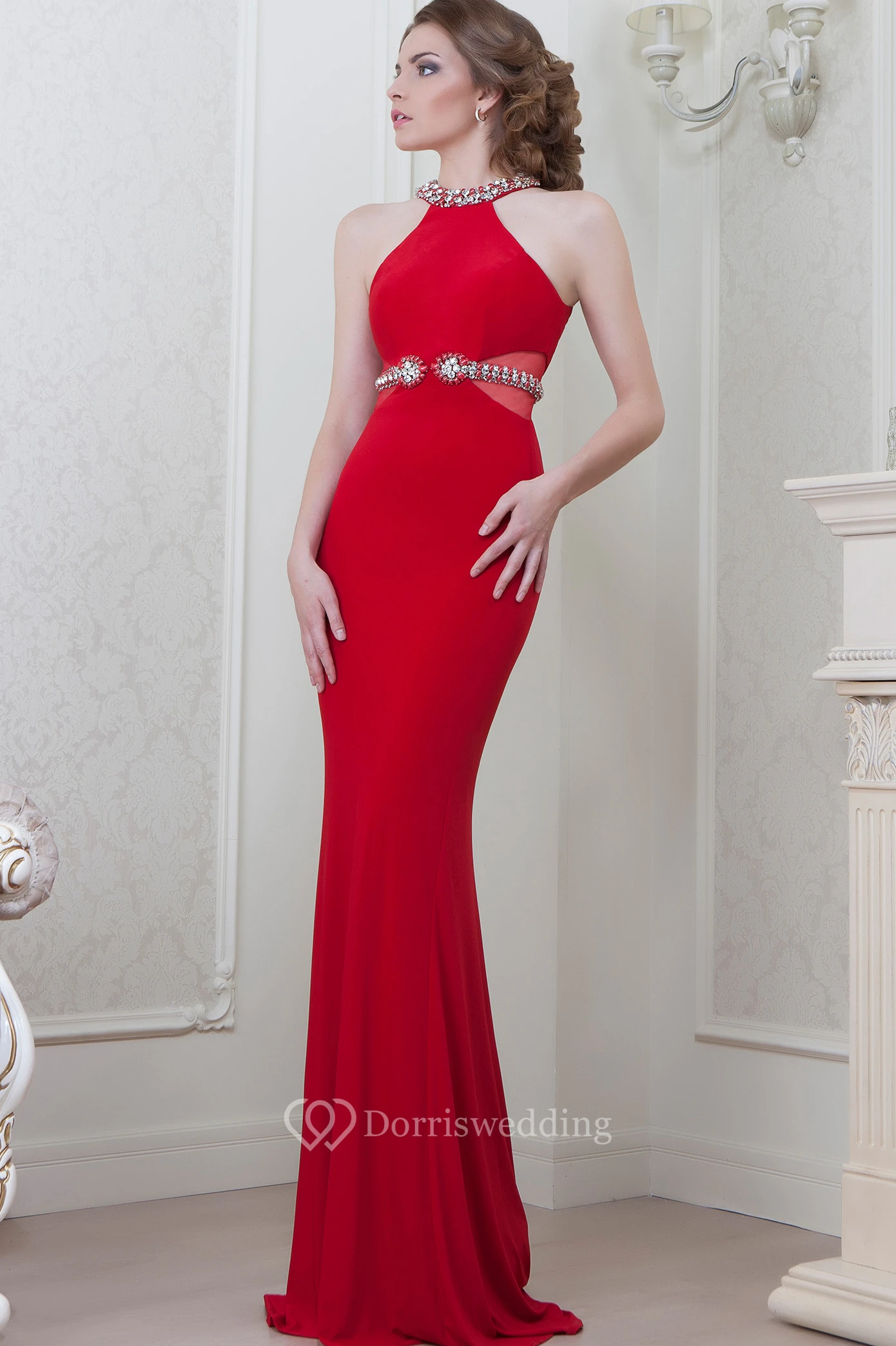 Sheath Floor-Length Sleeveless Scoop-Neck Beaded Jersey Evening Dress