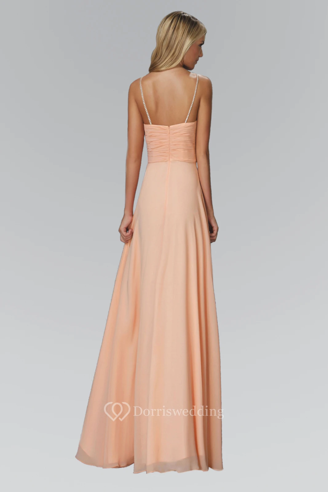 Sheath Floor-Length Spaghetti Sleeveless Chiffon Zipper Dress With Beading