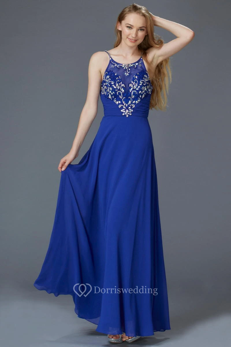 Sheath Floor-Length Spaghetti Sleeveless Chiffon Zipper Dress With Beading