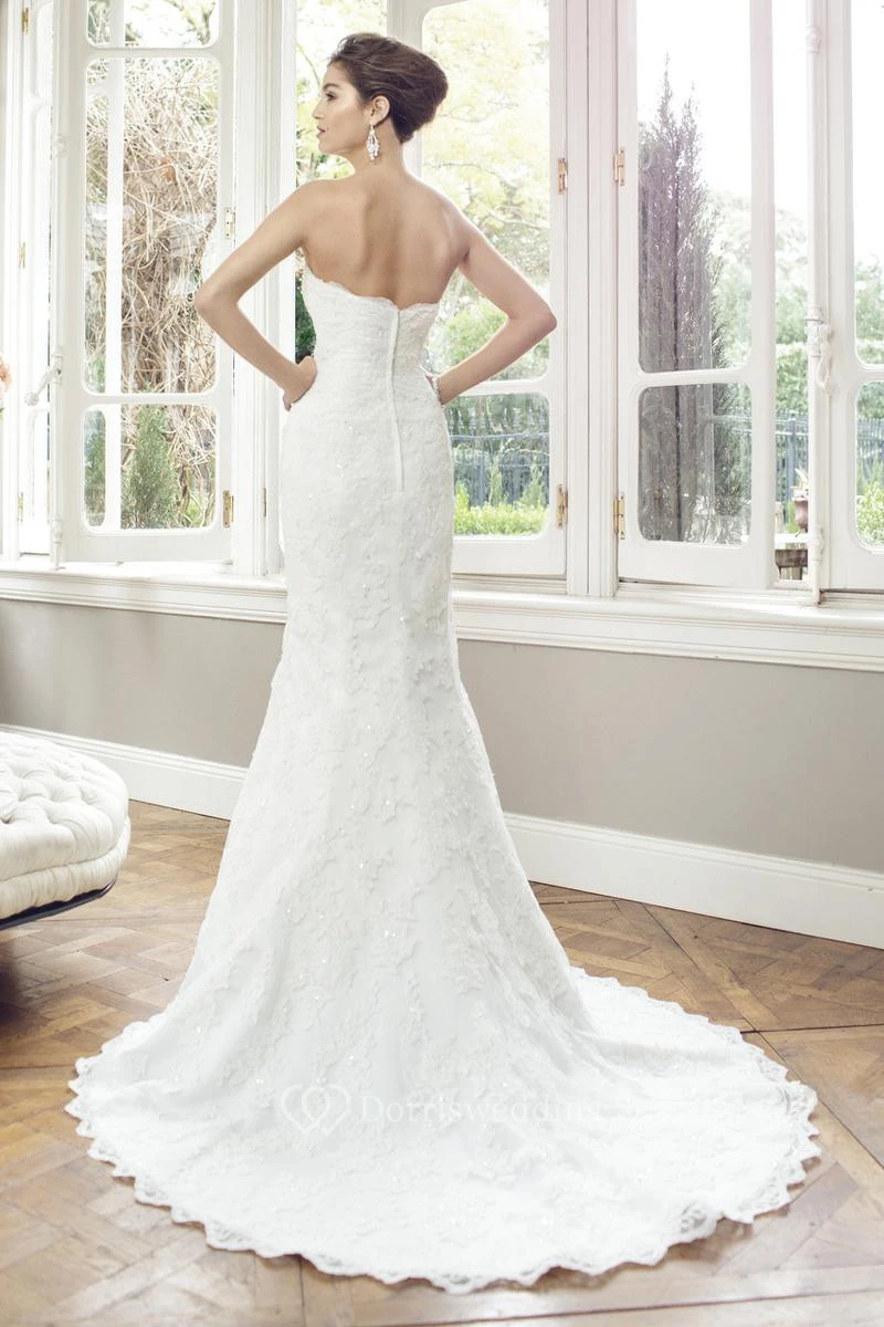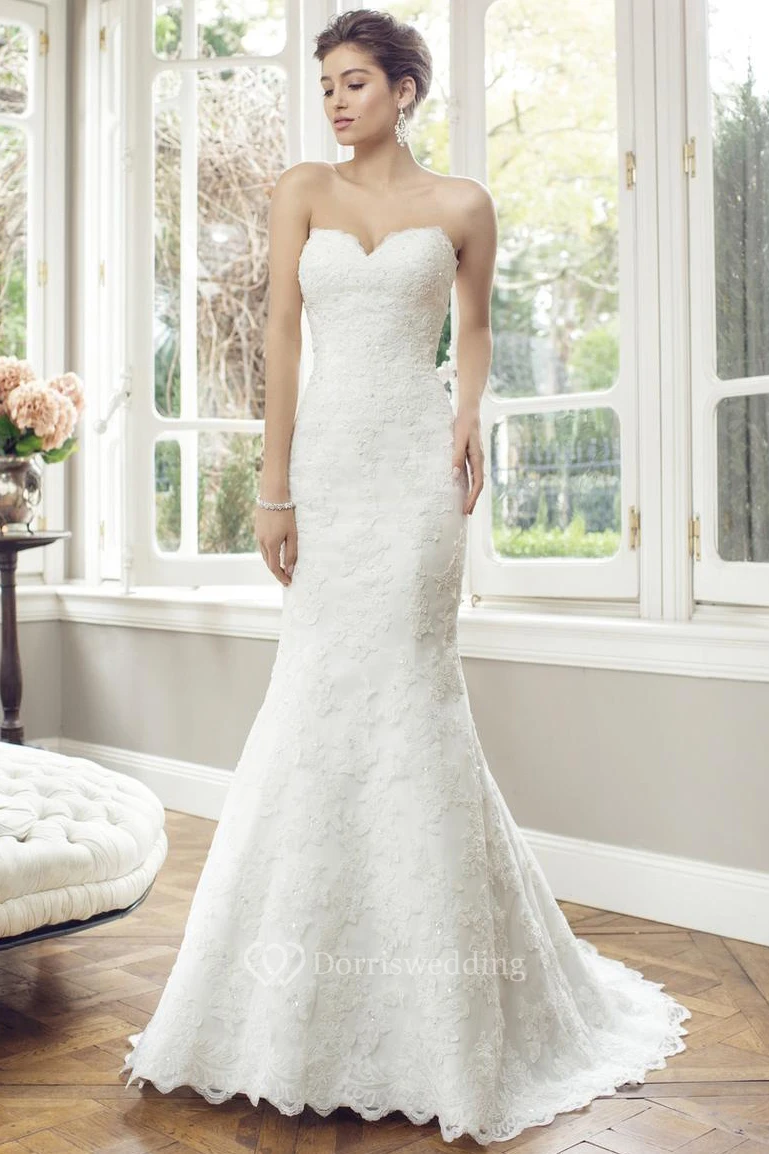 Sheath Floor-Length Sweetheart Lace Wedding Dress With Court Train