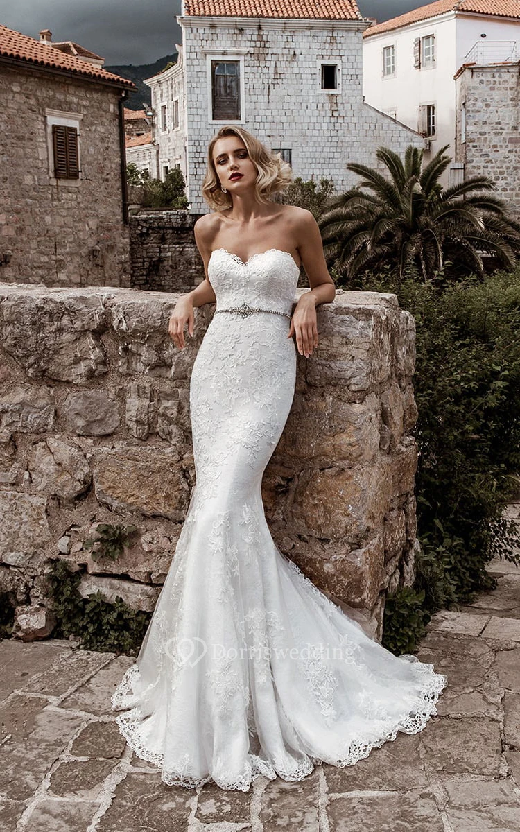 Sheath Floor-Length Sweetheart Sleeveless Lace-Up Lace Dress