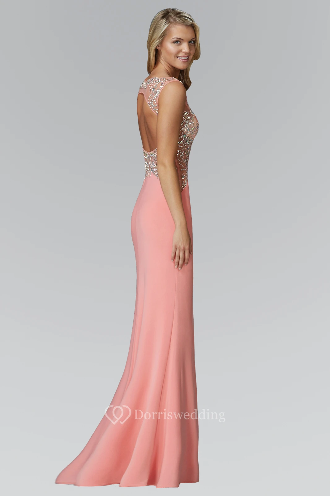 Sheath Floor-Length V-Neck Sleeveless Jersey Keyhole Dress With Beading