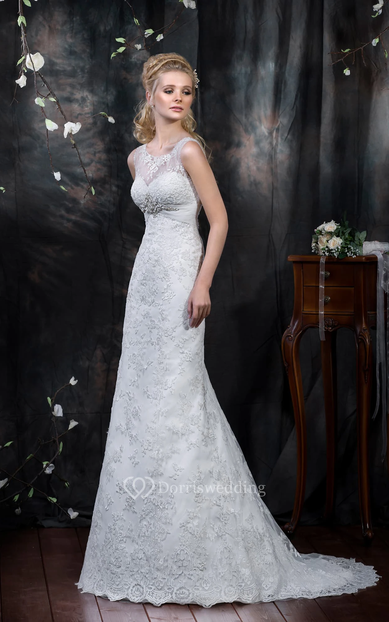 • Hemline/Train: Floor-length