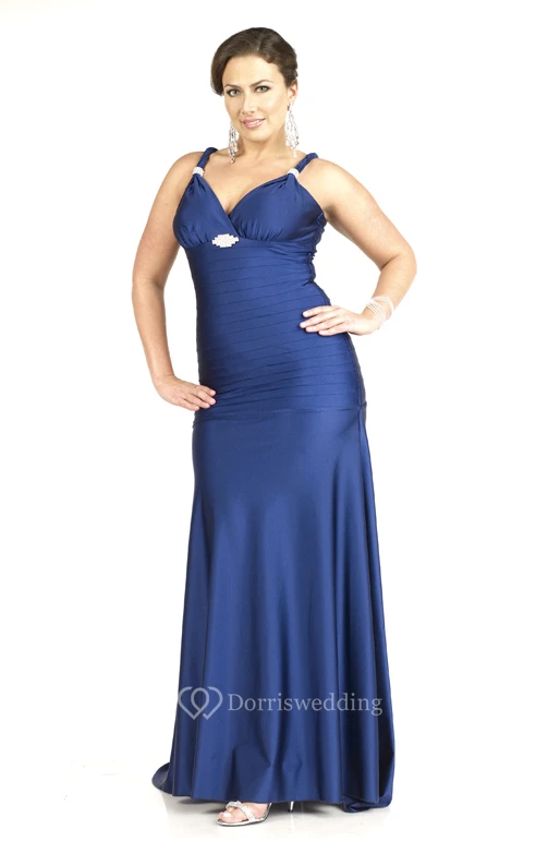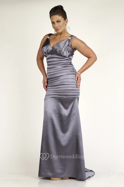 Sheath Floor-length V-neck Sleeveless Satin Ruching Sweep Train Low-V Back Dress