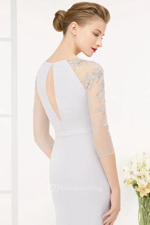 Sheath Half-Sleeve Jewel-Neck Beaded Maxi Chiffon Prom Dress With Broach