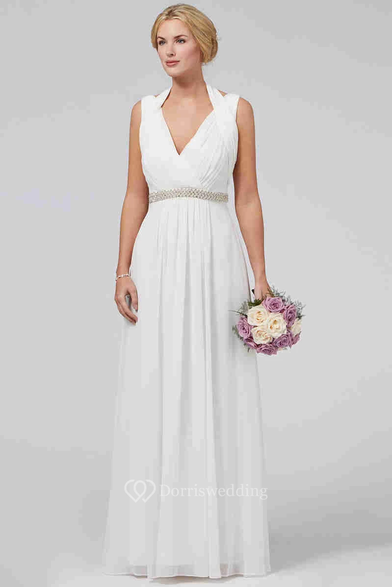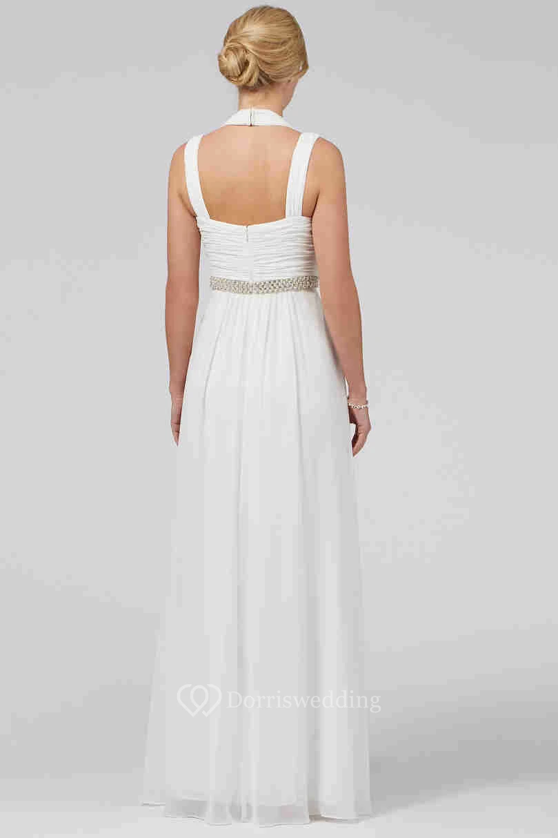 Sheath Haltered Ruched Maxi Sleeveless Chiffon Wedding Dress With Waist Jewellery