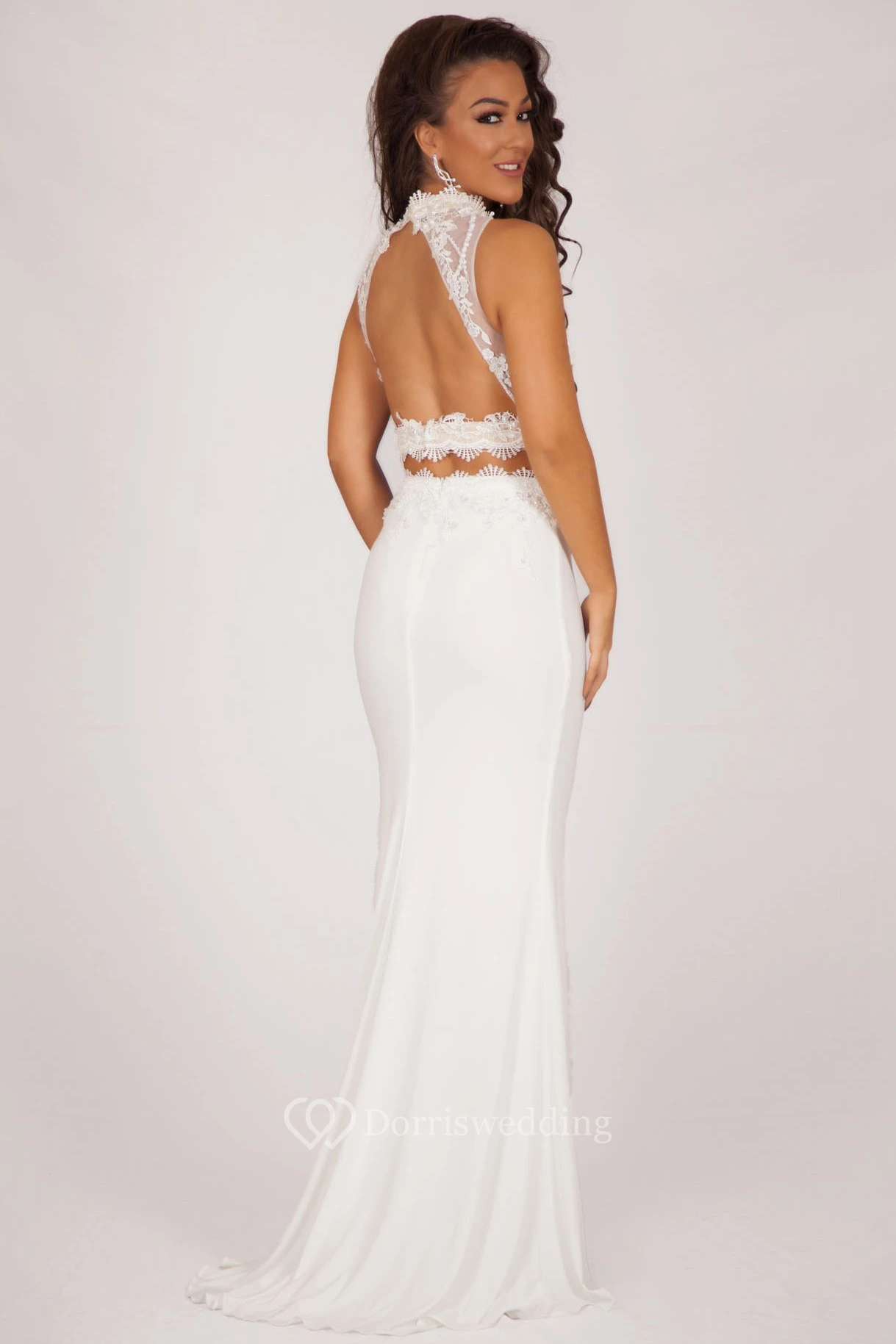 Sheath High Neck Sleeveless Beaded Chiffon Prom Dress With Keyhole