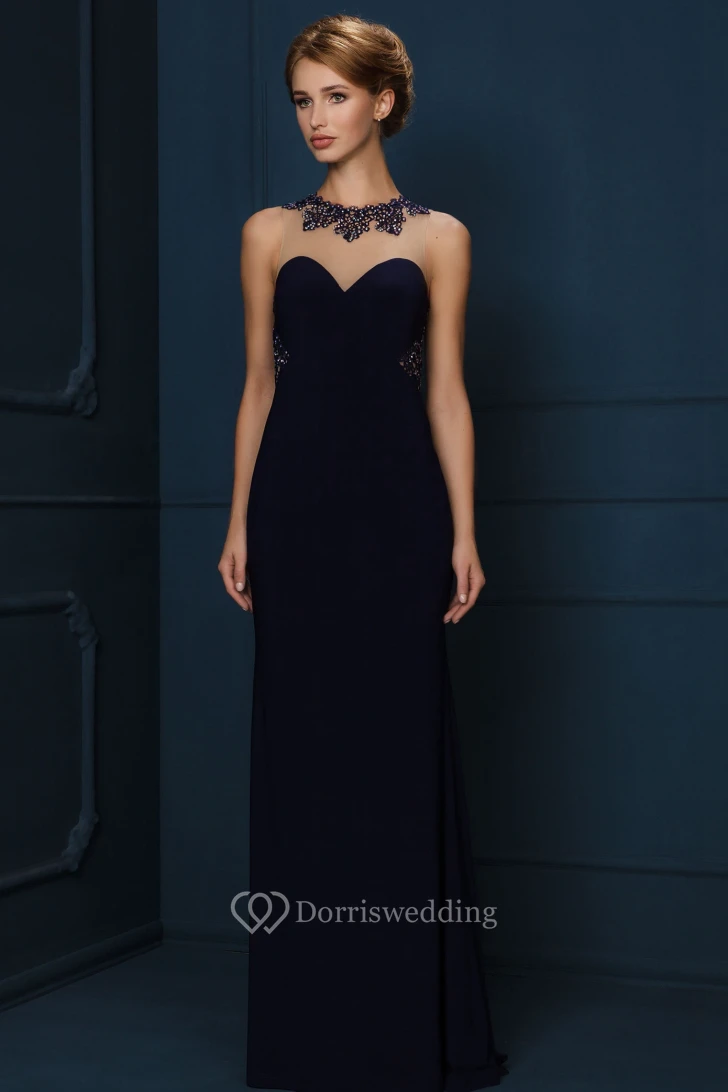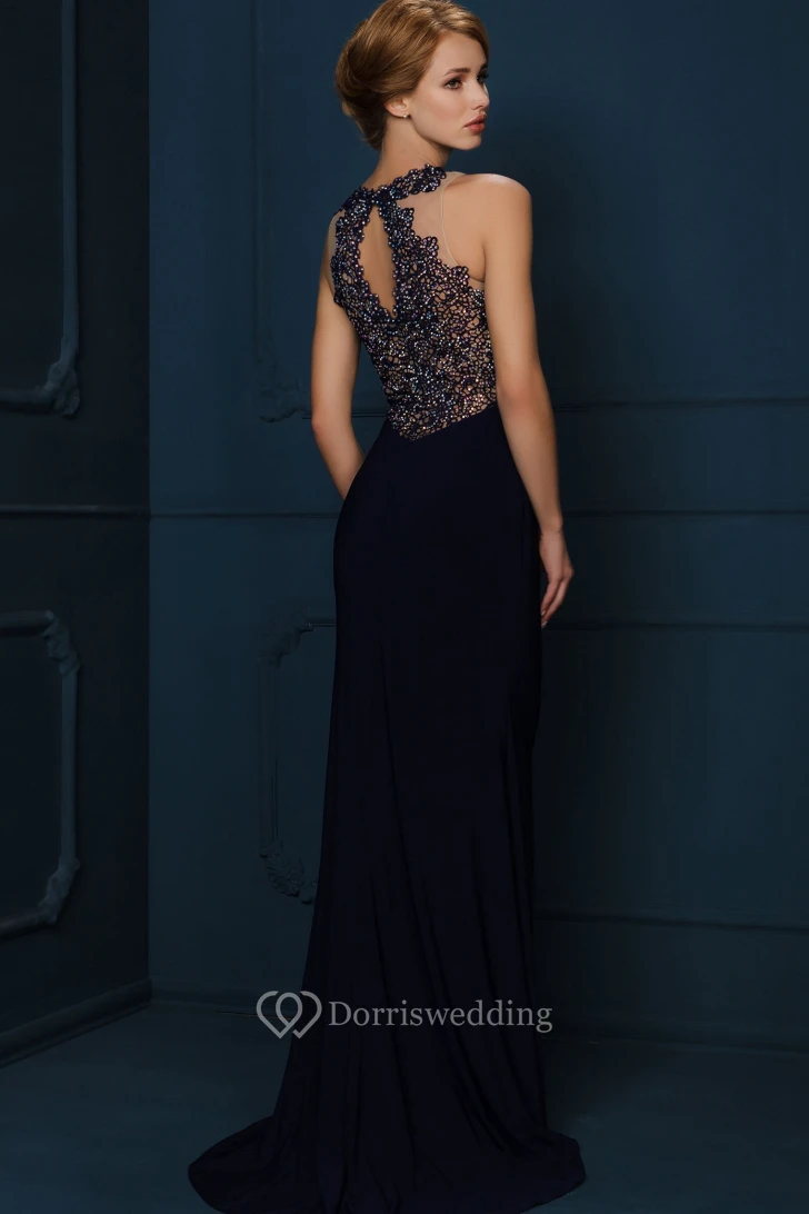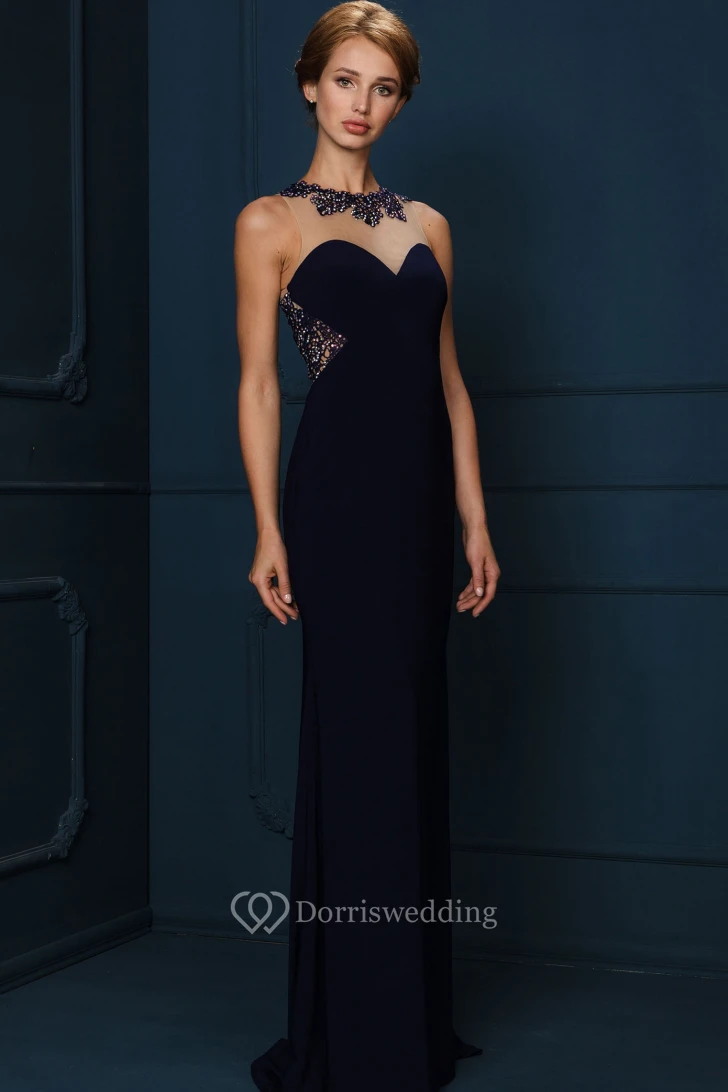 Sheath High-Neck Sleeveless Floor-Length Crystal Jersey Evening Dress