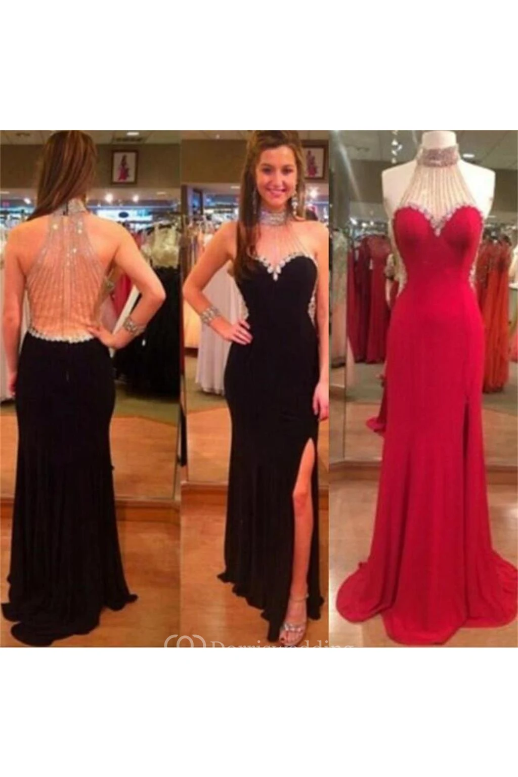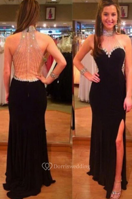 Sheath Jersey High Neck Sleeveless Zipper Illusion Dress
