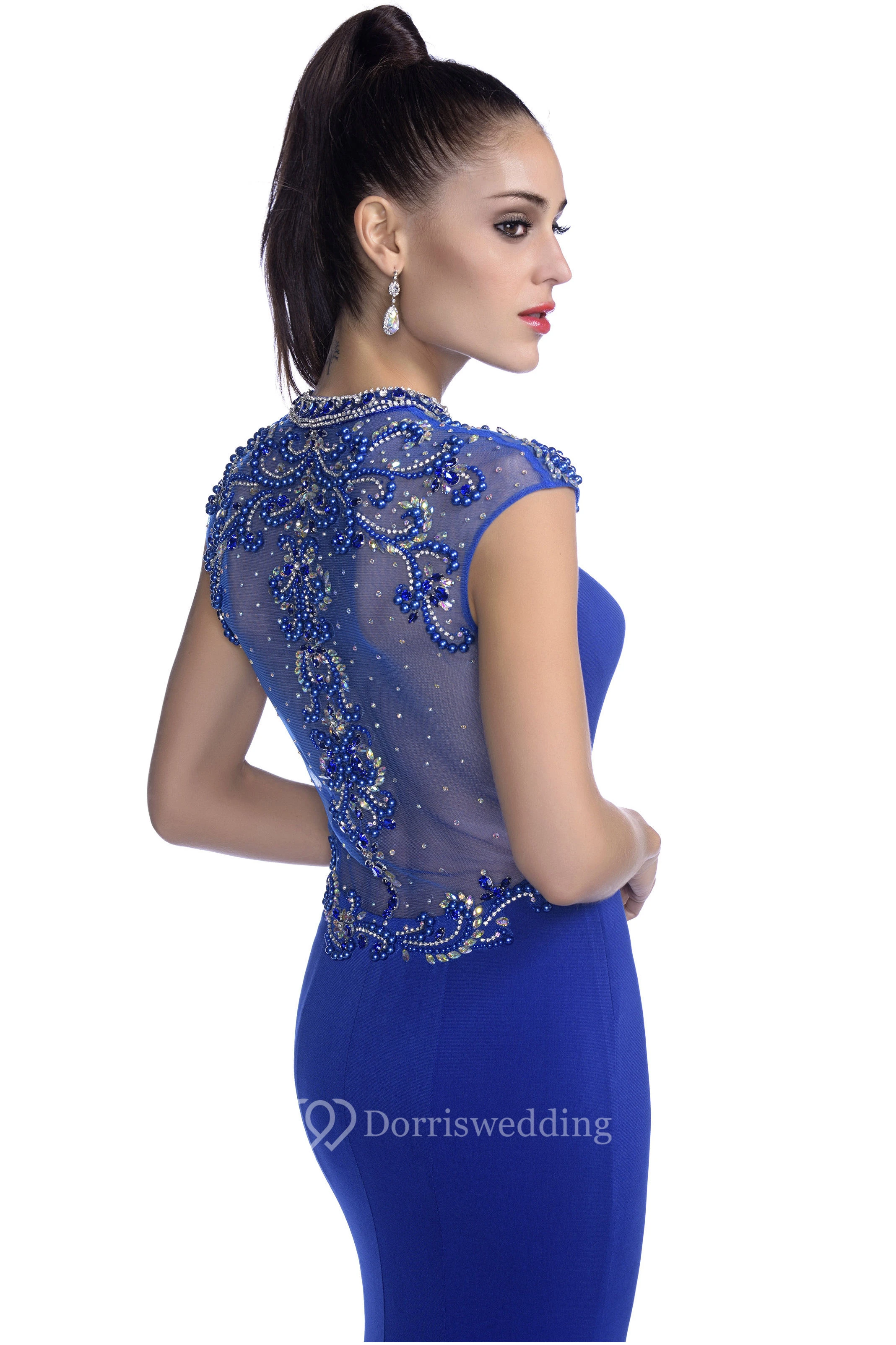 Sheath Jersey Side Slit Cap Sleeve Prom Dress With Rhinestones