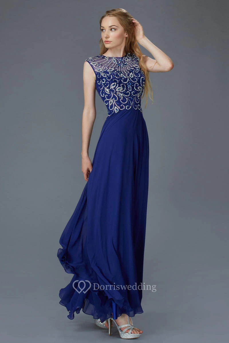 Sheath Jewel-Neck Sleeveless Chiffon Dress With Beading And Pleats