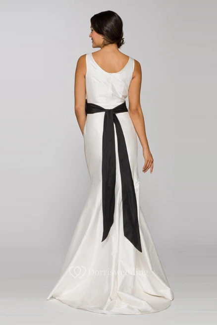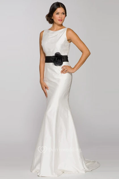 Sheath Jewel-Neck Sleeveless Floral Long Satin Wedding Dress With Bow