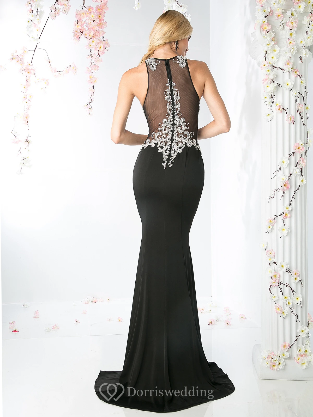 Sheath Jewel-Neck Sleeveless Jersey Illusion Dress With Beading