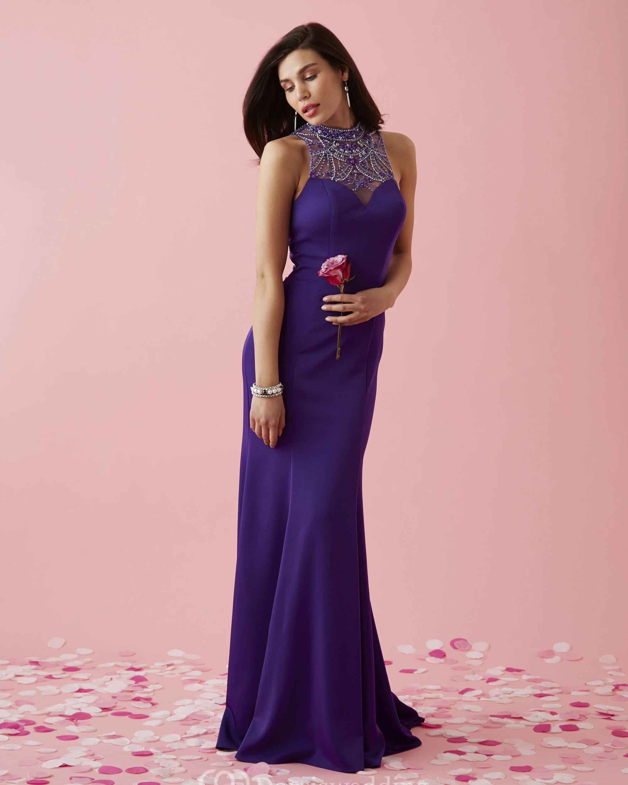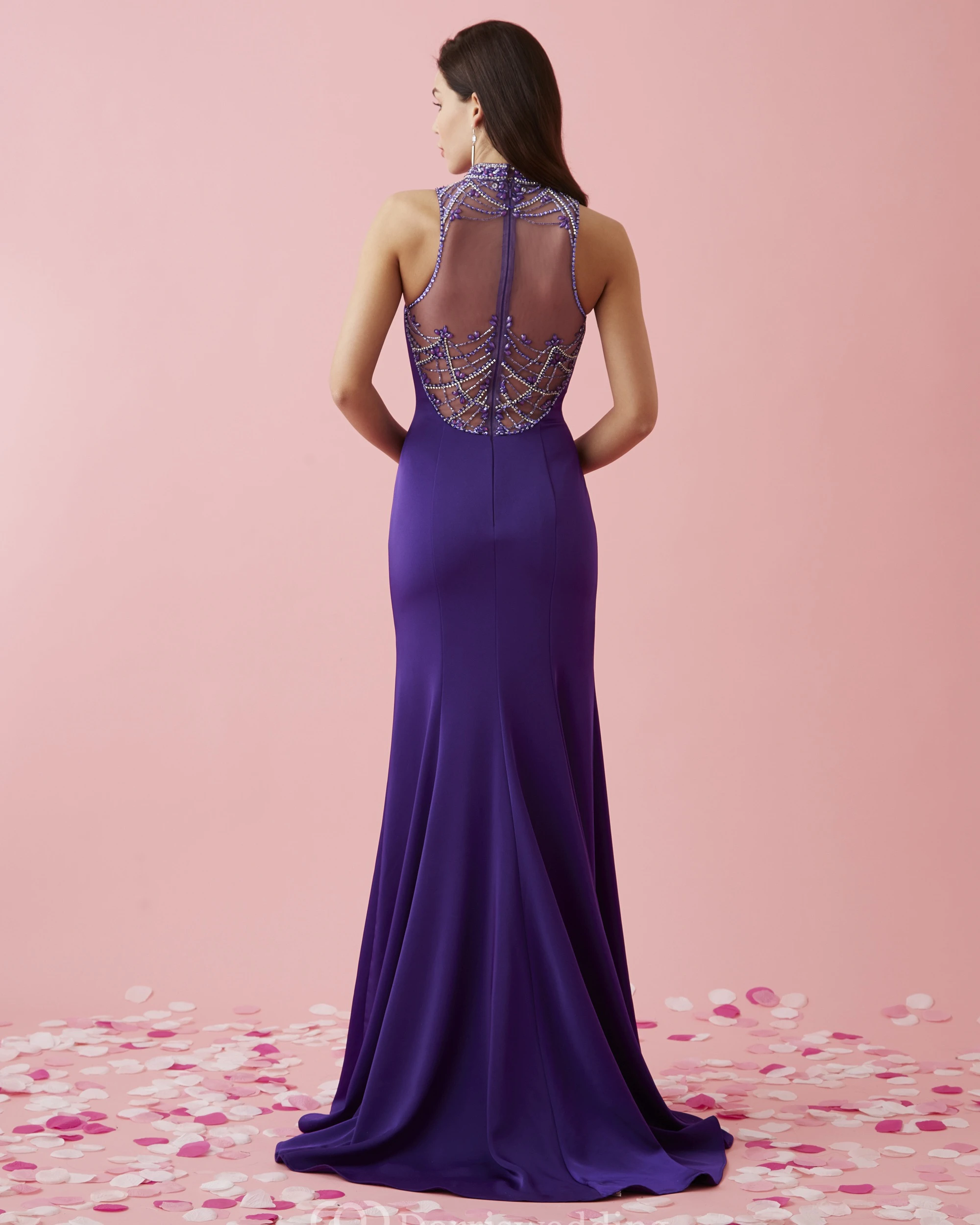 Sheath Jewel-Neck Sleeveless Jersey Illusion Dress With Beading