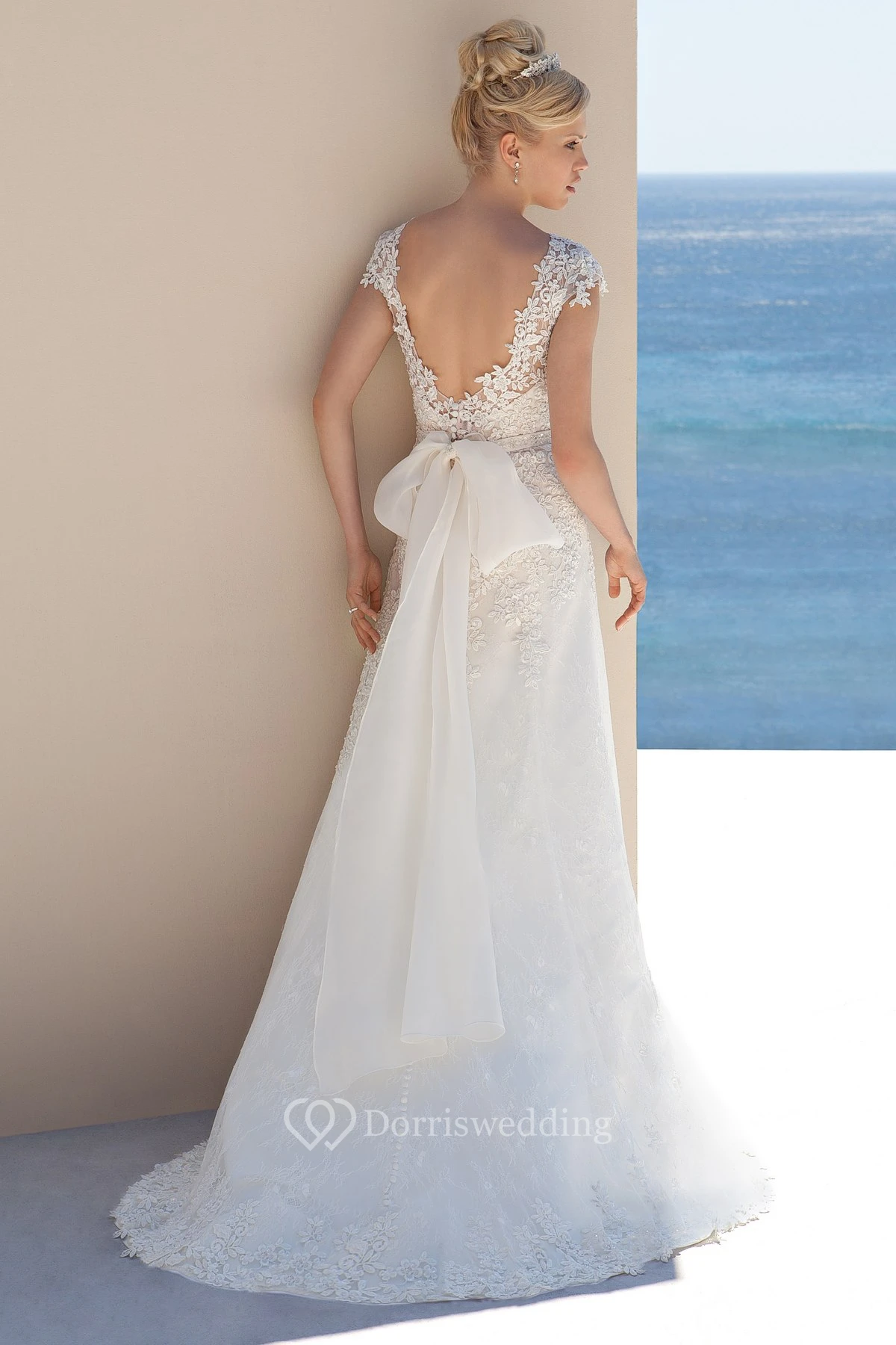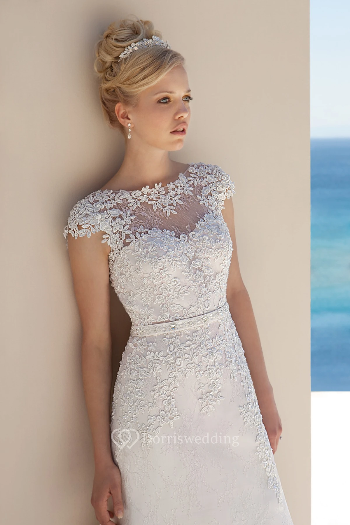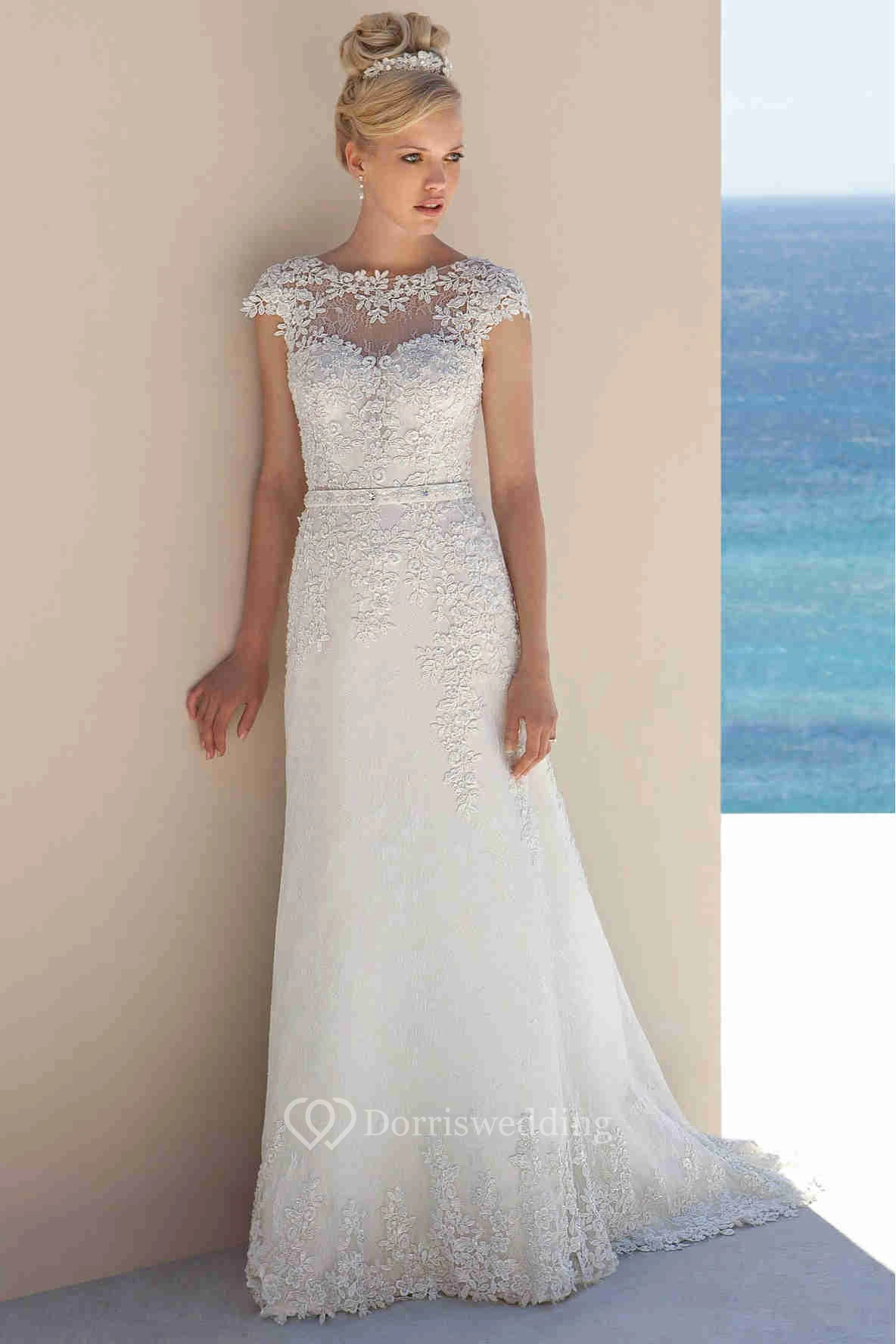 Sheath Jewel-Neck Sleeveless Long Lace Wedding Dress Styles With Appliques