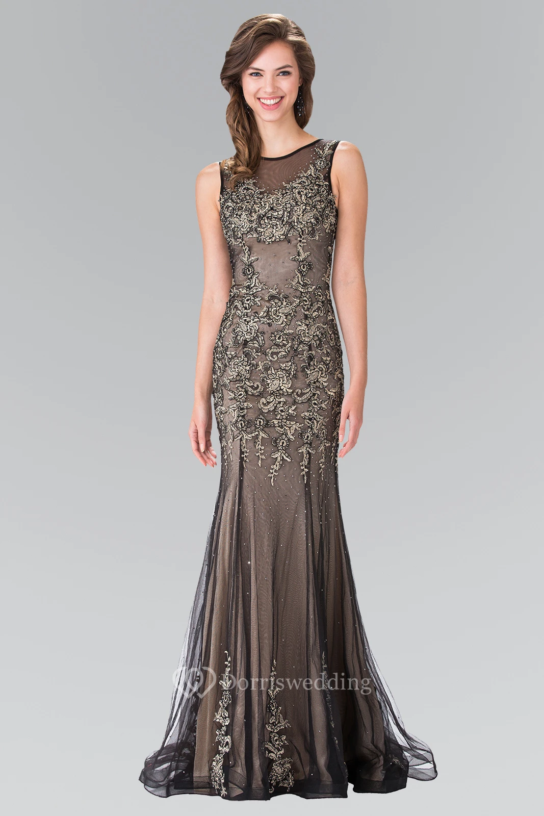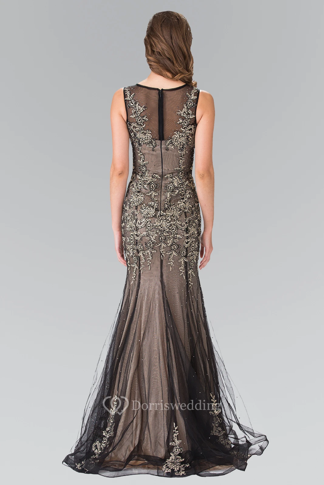 Sheath Jewel-Neck Sleeveless Tulle Illusion Dress With Appliques And Pleats