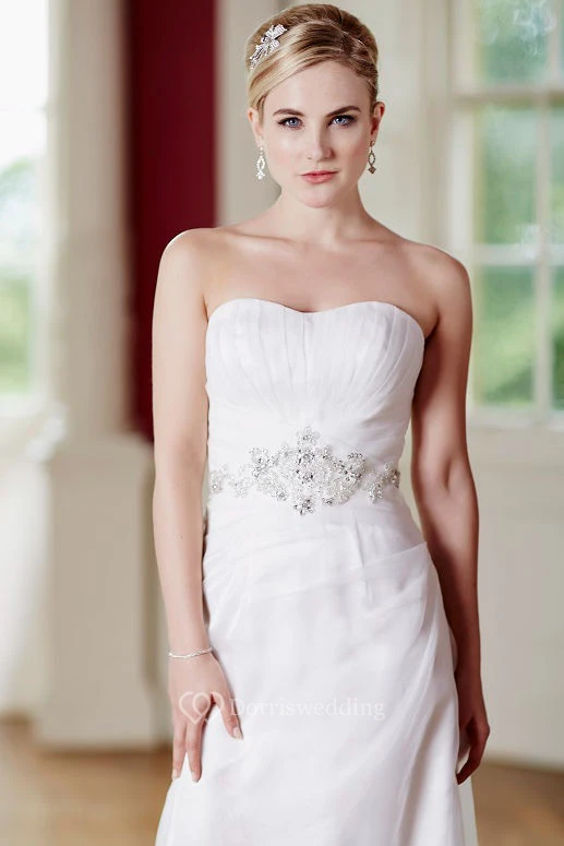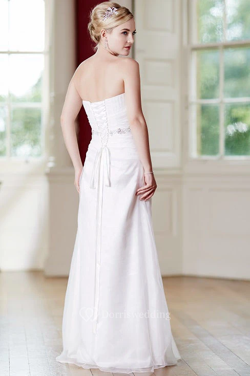 Sheath Jeweled Strapless Satin&Tulle Wedding Dress With Ruching And Lace Up