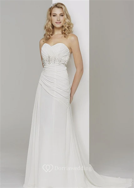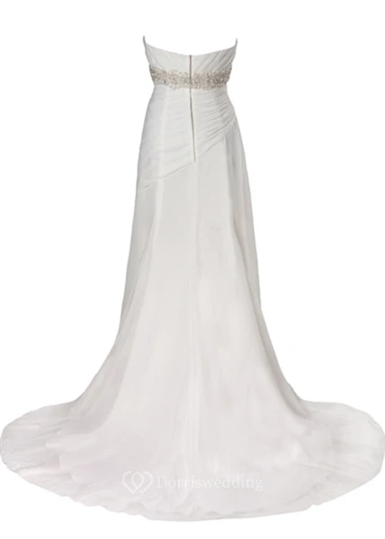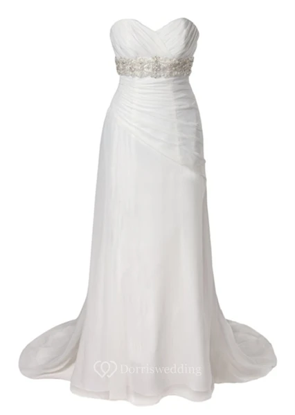 Sheath Jeweled Sweetheart Chiffon Wedding Dress With Criss Cross And Sweep Train