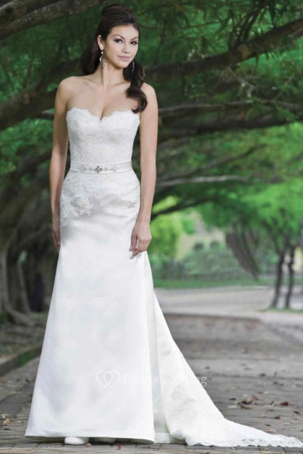 Sheath Jeweled Sweetheart Maxi Satin Wedding Dress With Lace