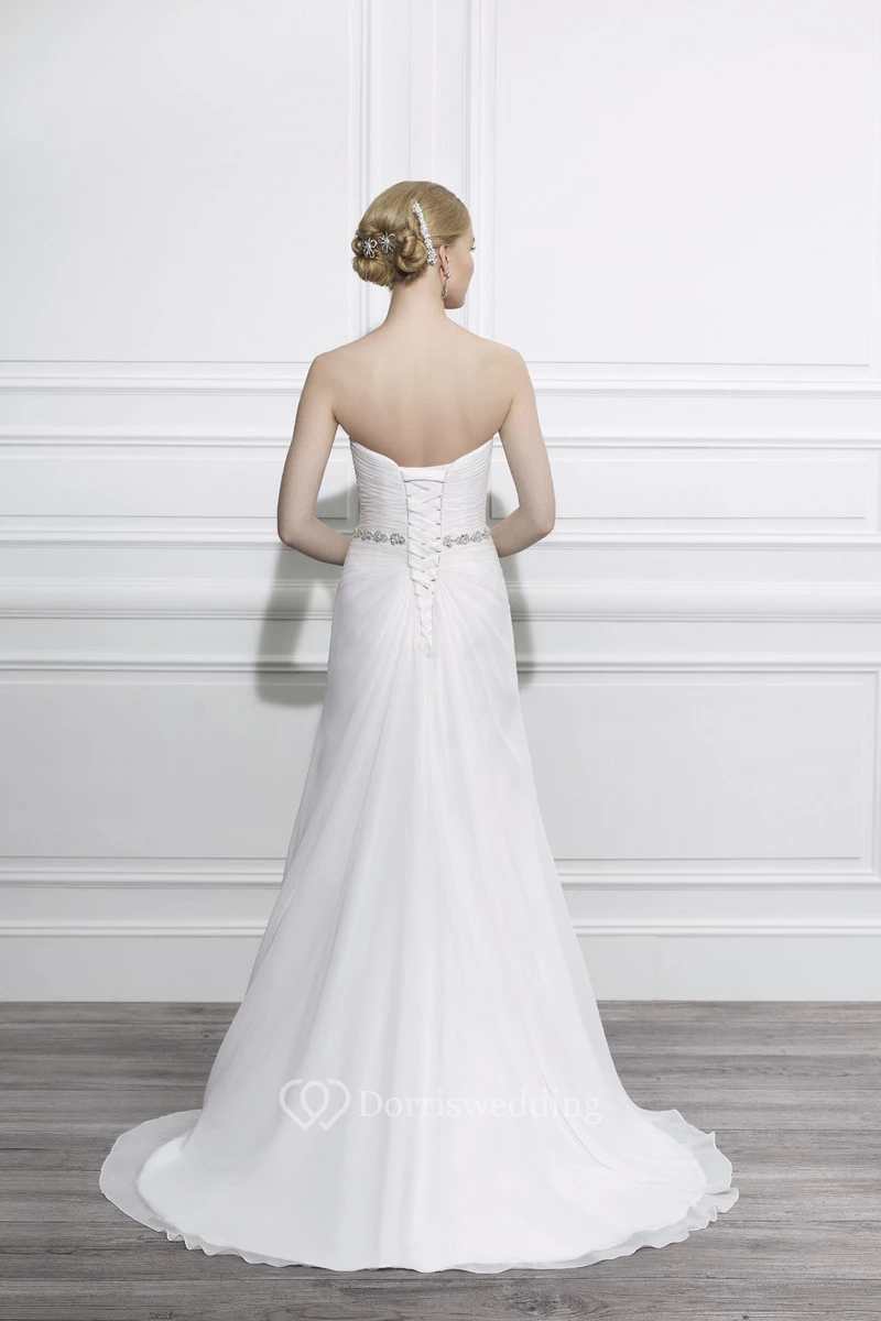 Sheath Jeweled Sweetheart Tulle Wedding Dress With Criss Cross And Lace Up