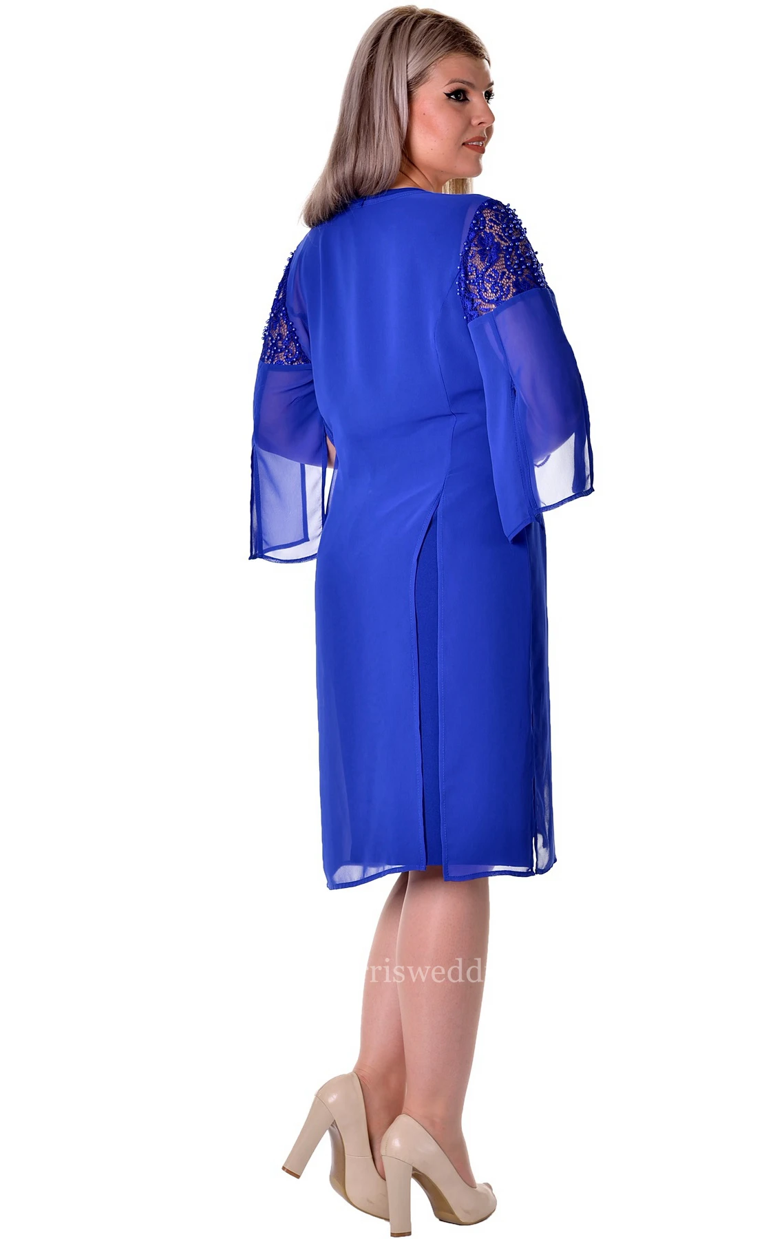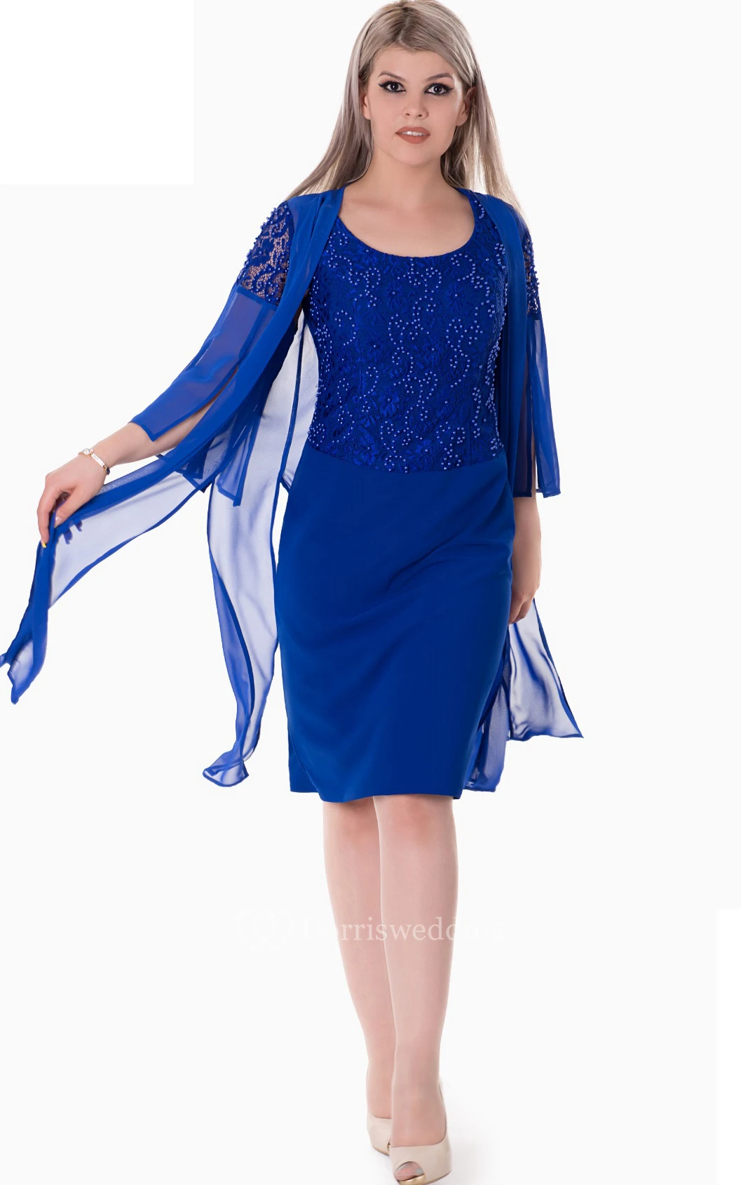 Sheath Knee-Length Scoop 3 Chiffon Beading Zipper Dress