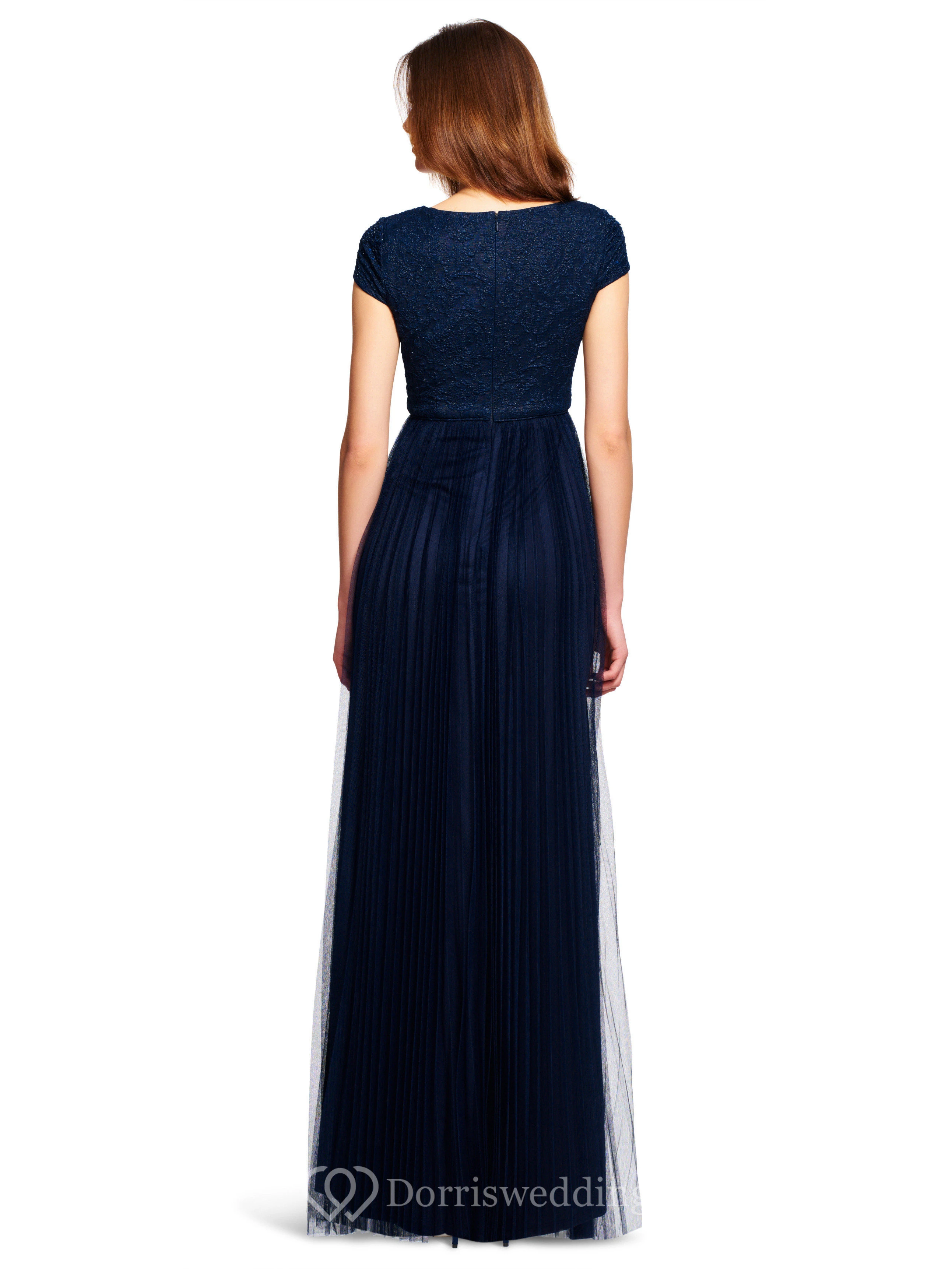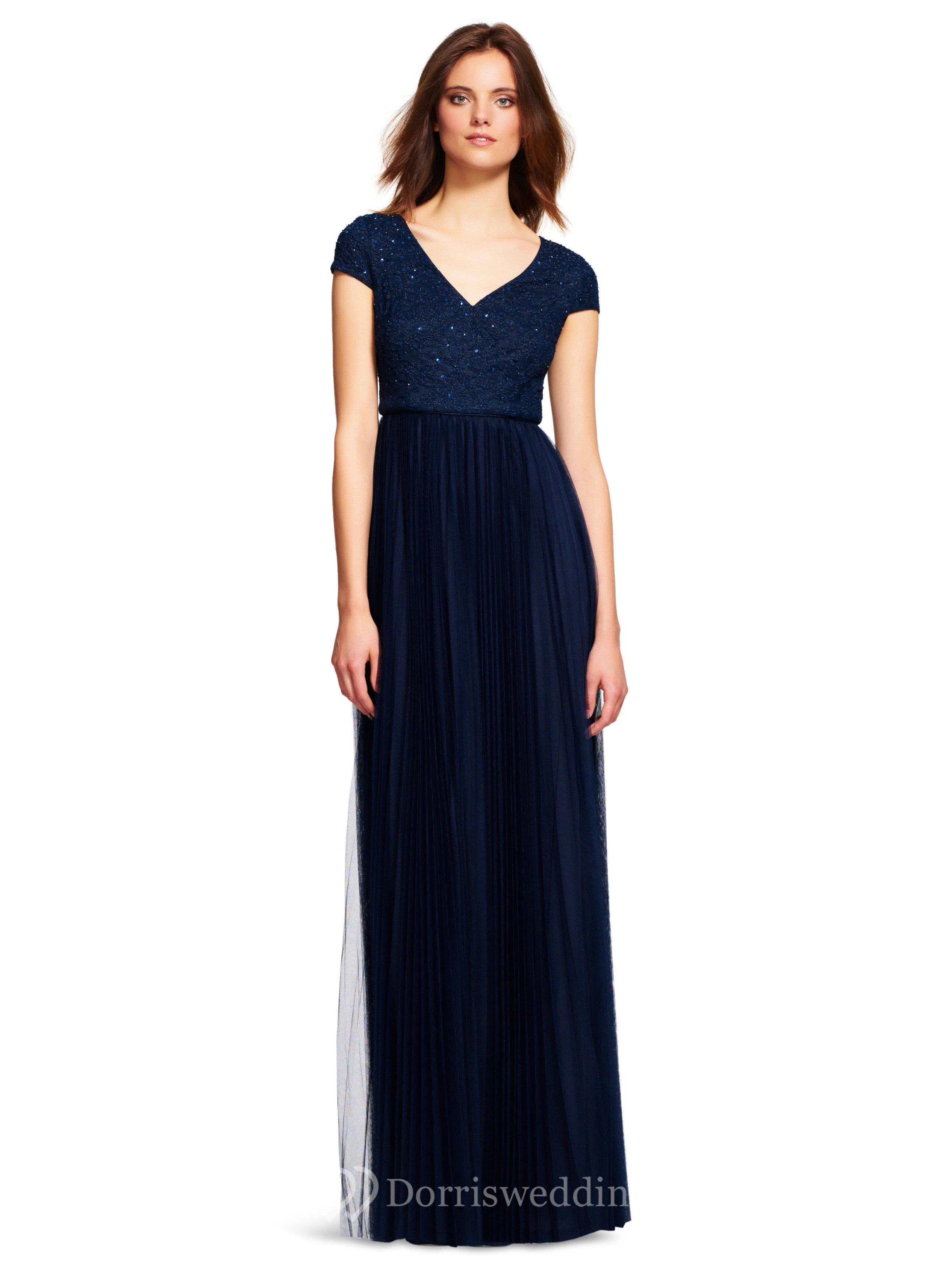 Sheath Lace Cap-Sleeve V-Neck Long Bridesmaid Dress With Pleats And Sequins