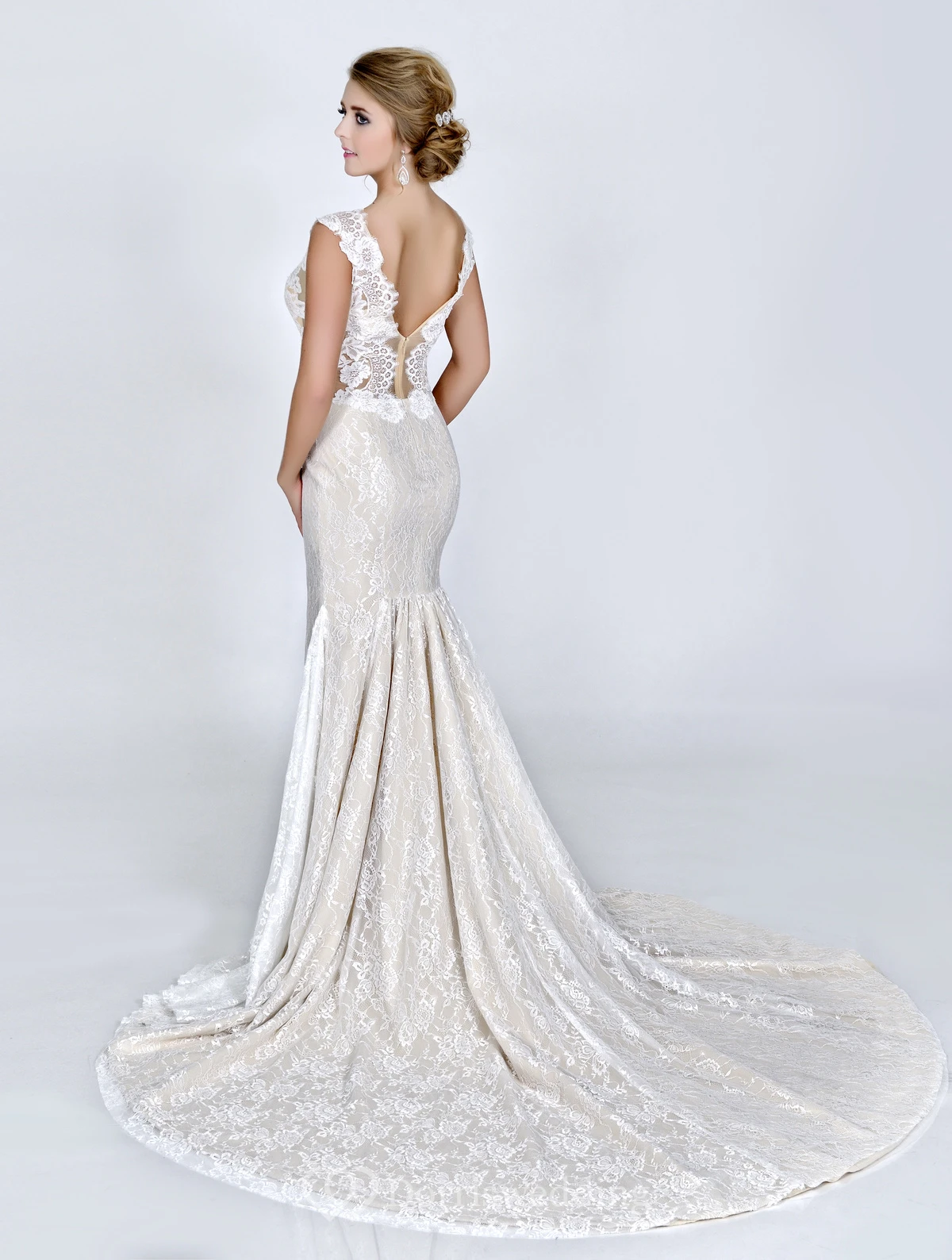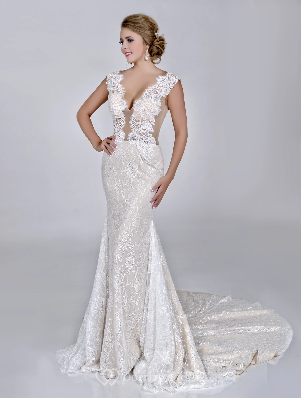 Sheath Lace V-Neck Sleeveless Wedding Dress With Court Train