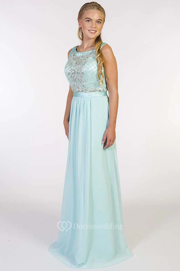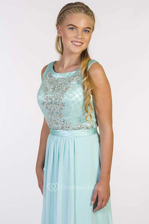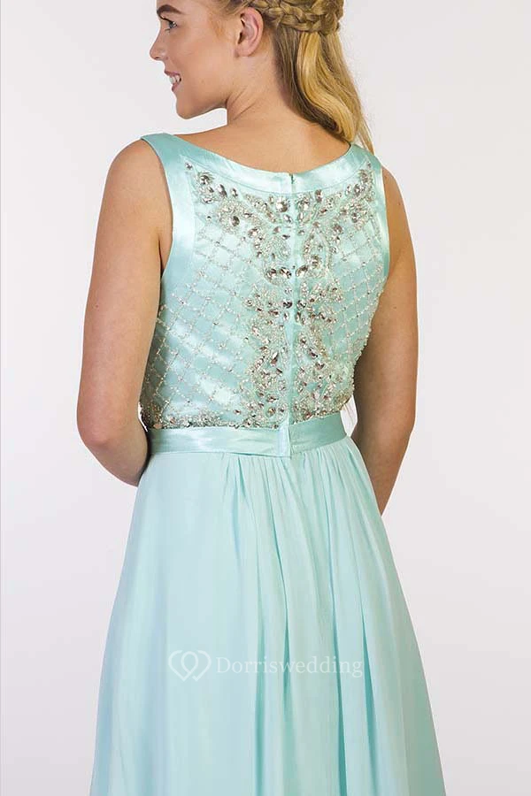 Sheath Long Beaded Scoop-Neck Sleeveless Chiffon Prom Dress
