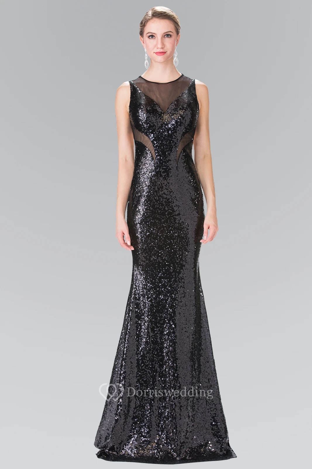 Sheath Long Jewel-Neck Sleeveless Sequins Keyhole Dress