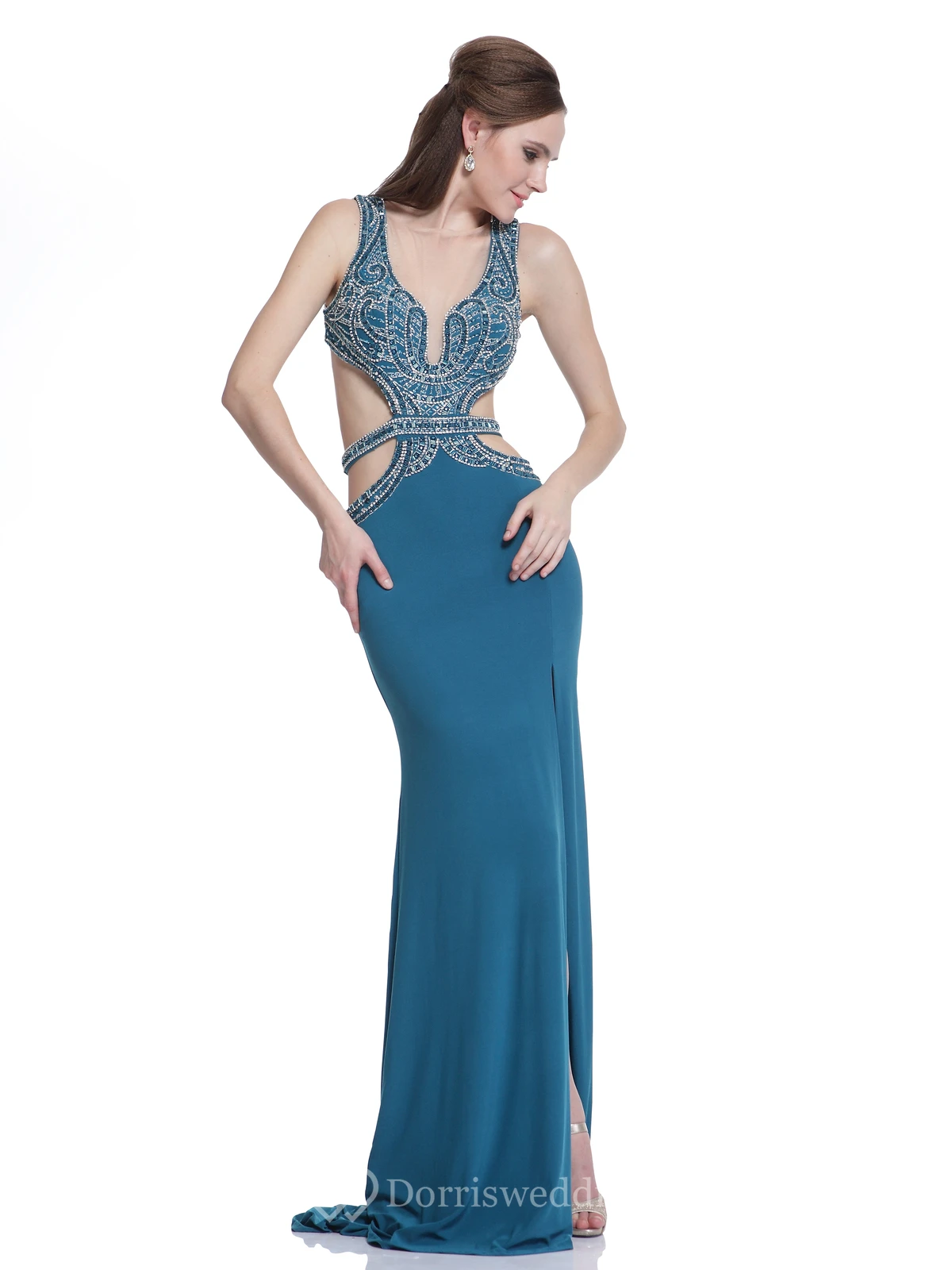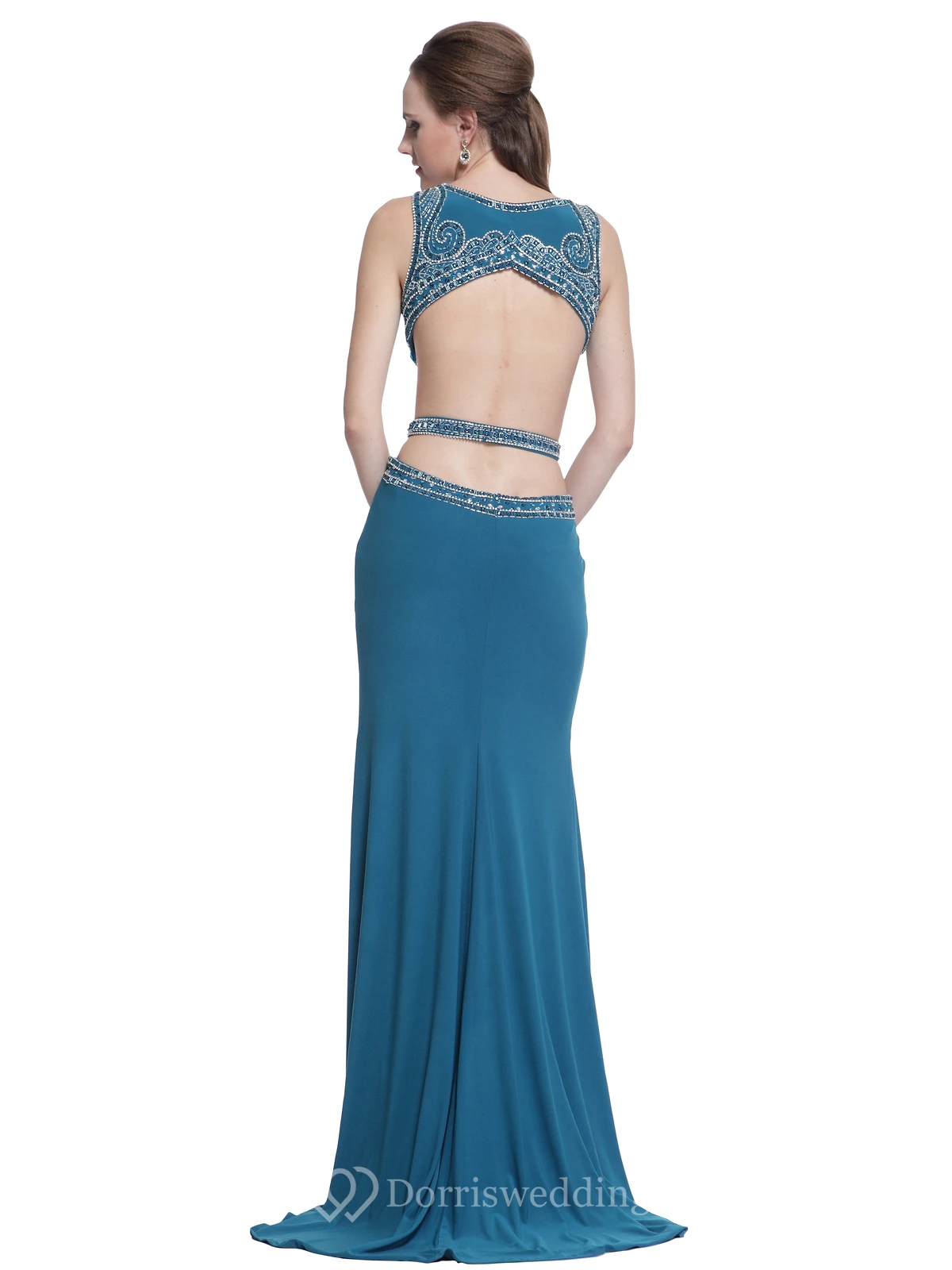 Sheath Long Scoop-Neck Sleeveless Jersey Backless Dress With Beading