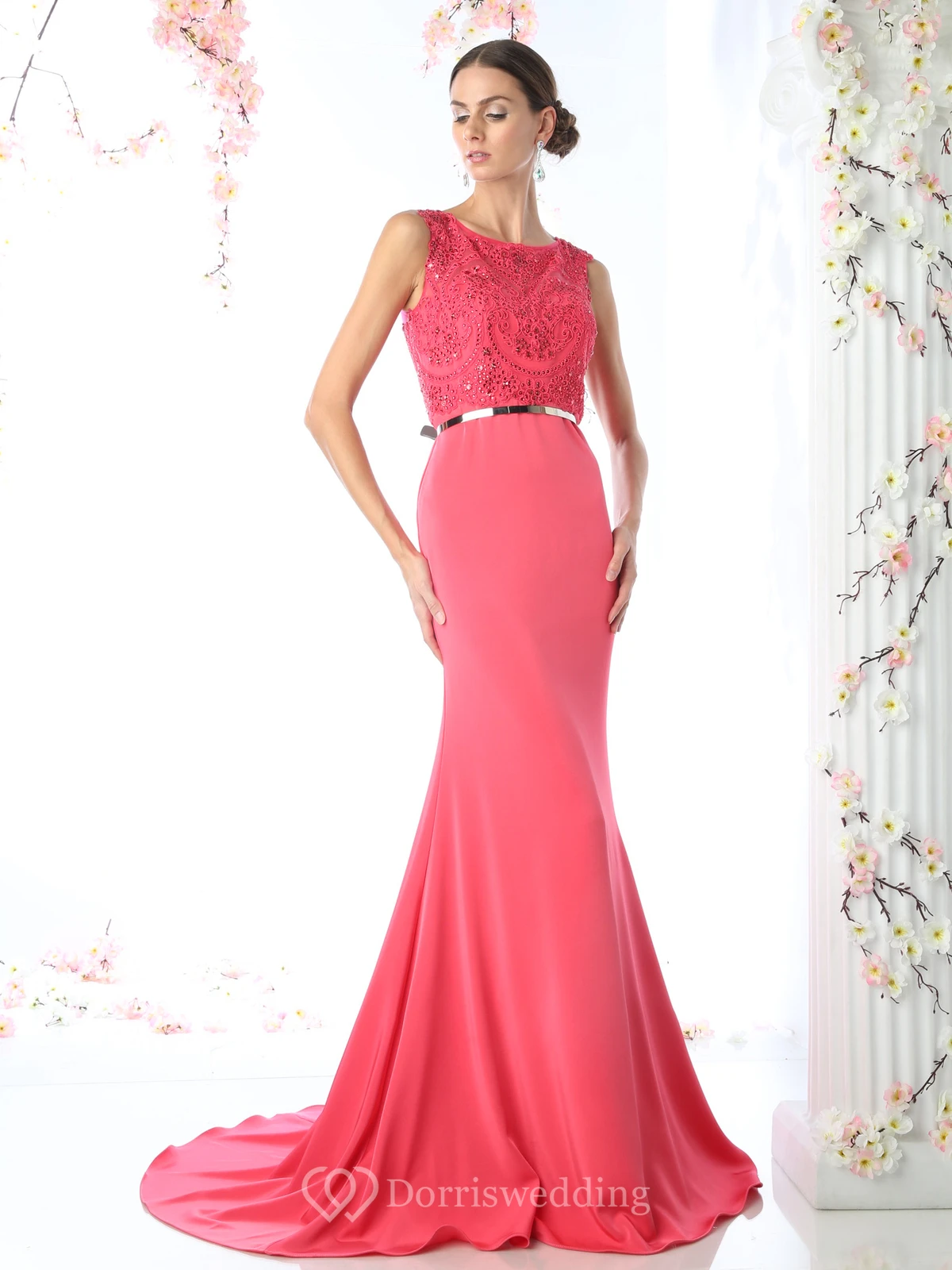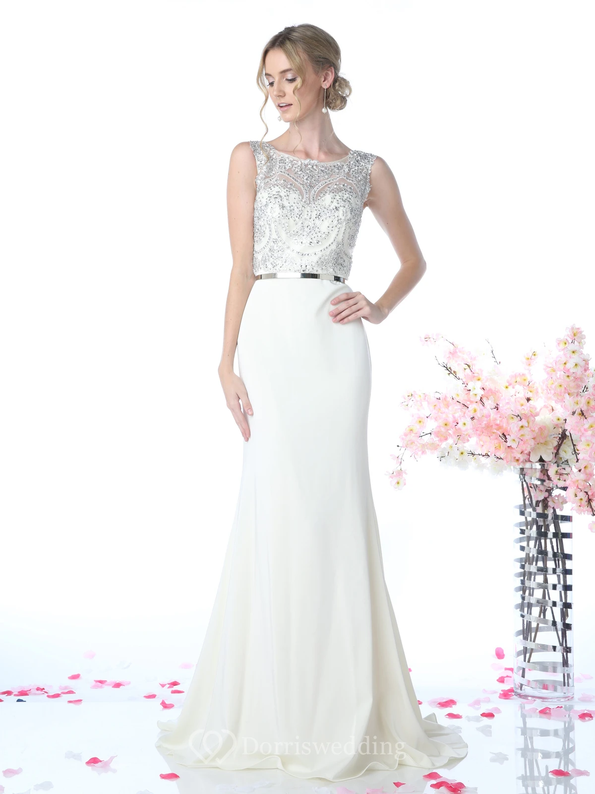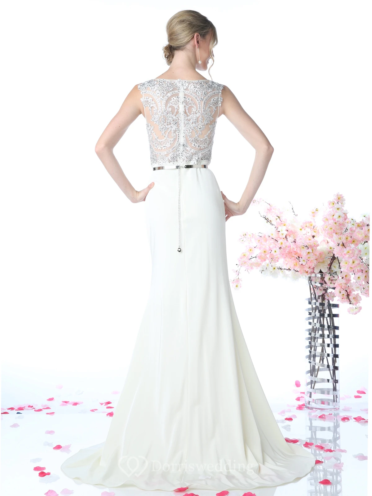 • Hemline/Train: Floor-length, Sweep/Brush Train