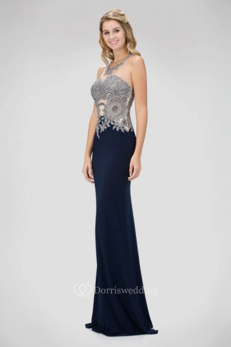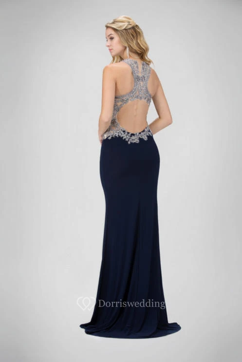 Sheath Long Scoop-Neck Sleeveless Jersey Keyhole Dress With Beading