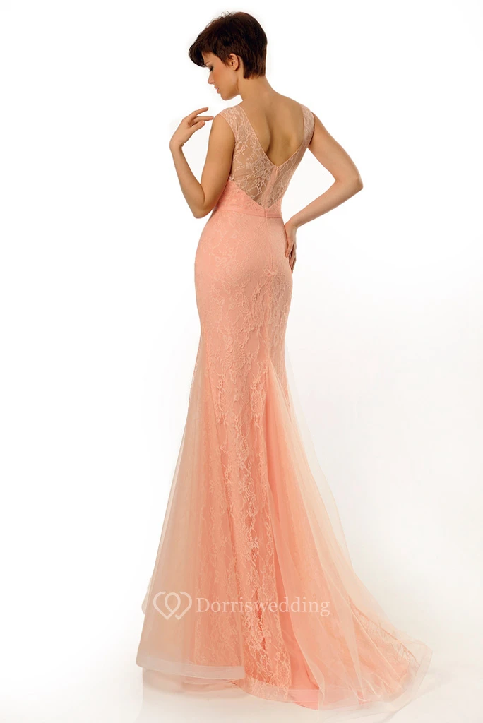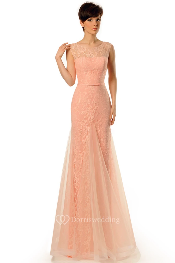 Sheath Long Scoop-Neck Sleeveless Tulle&Lace Prom Dress