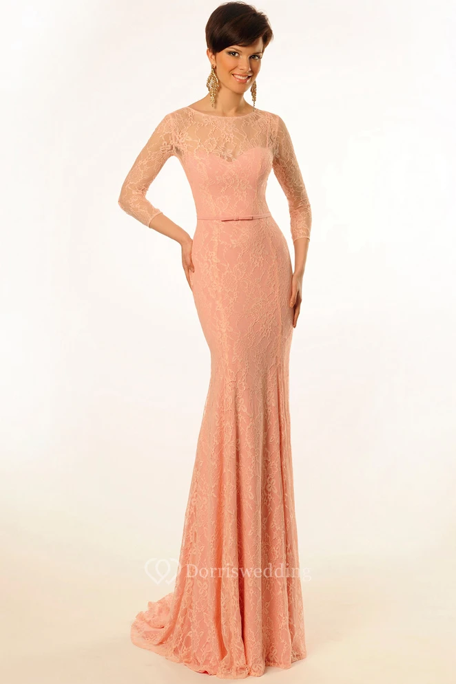 Sheath Long-Sleeve Scoop-Neck Floor-Length Lace Prom Dress