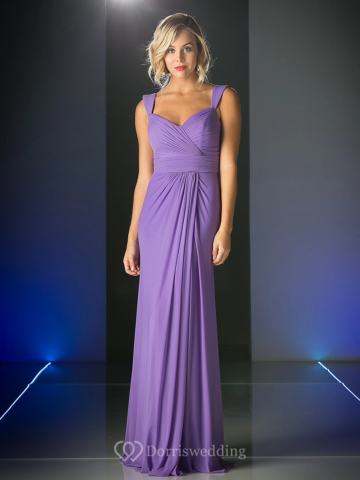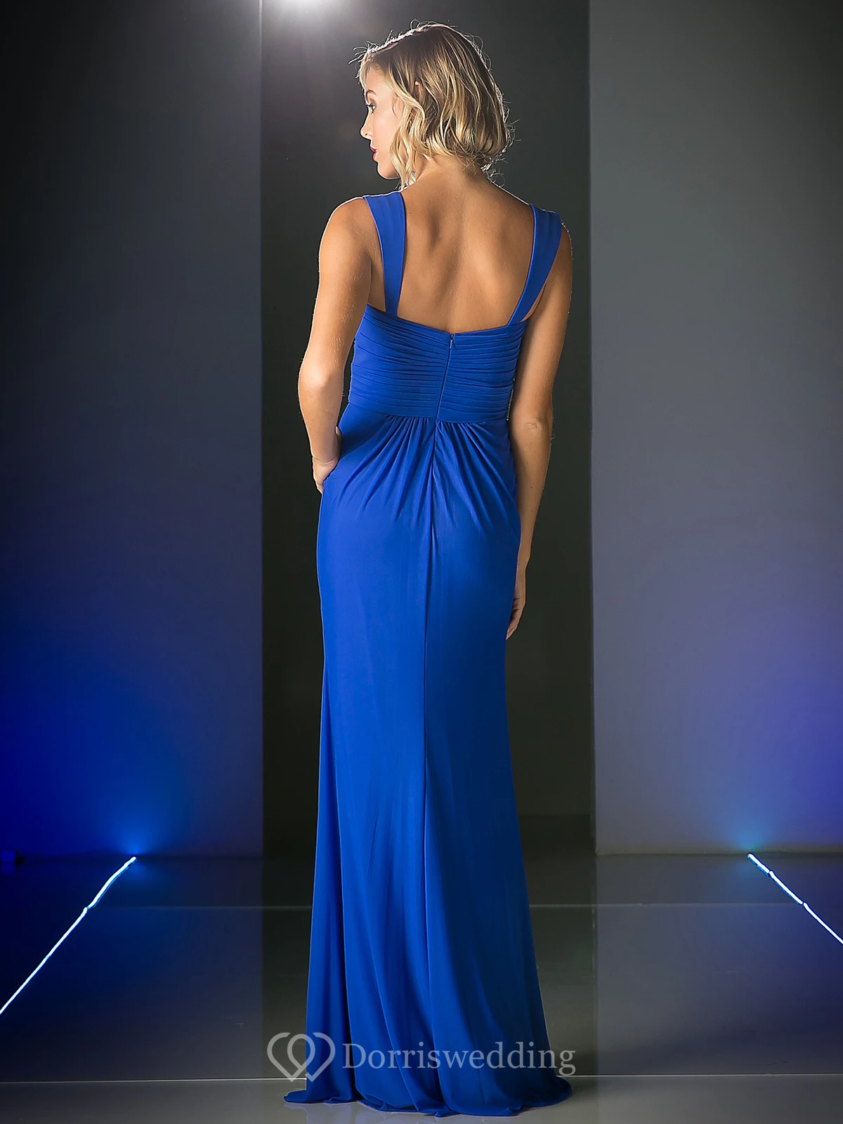Sheath Long Sleeveless Chiffon Zipper Dress With Criss Cross And Draping