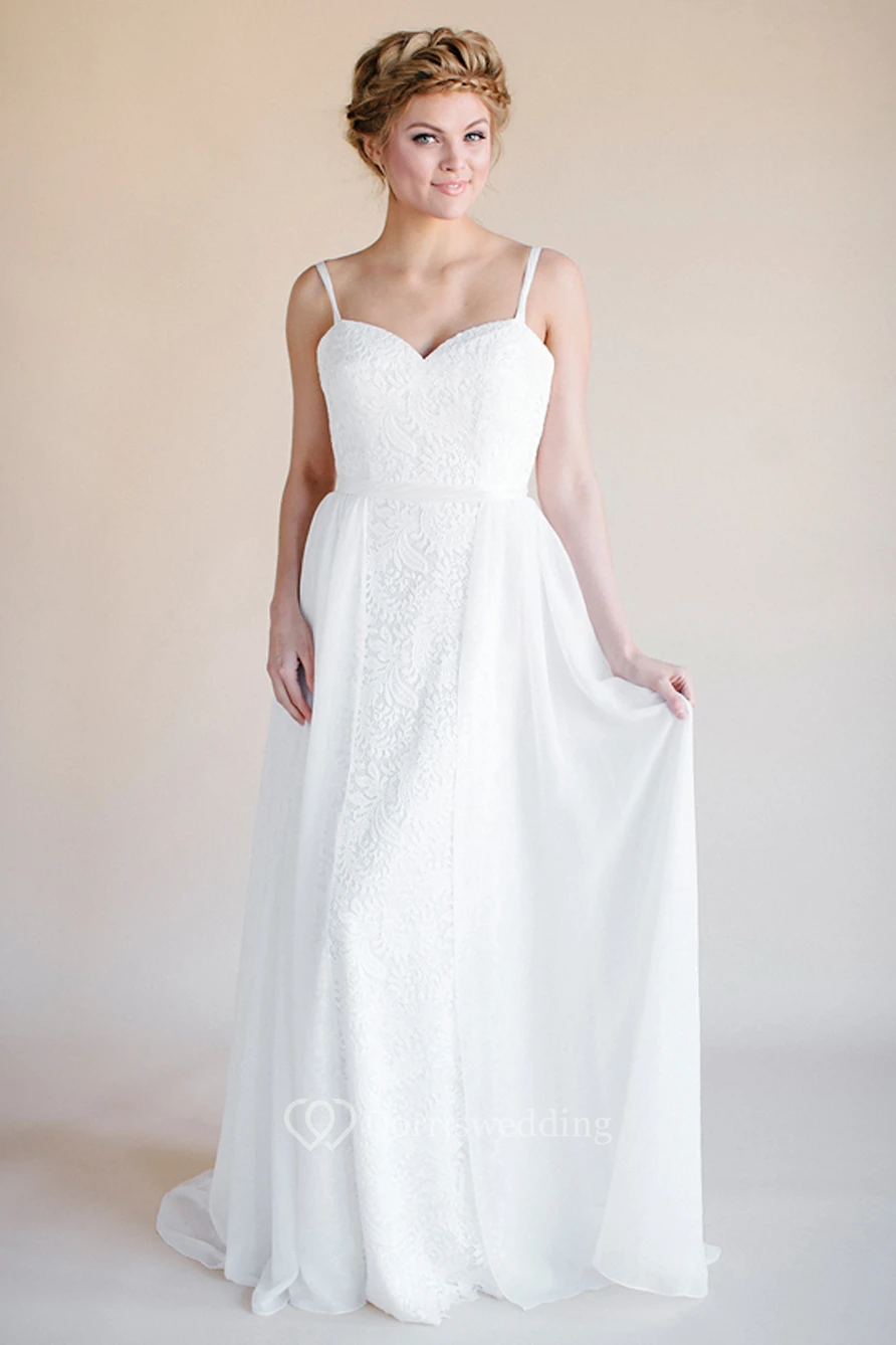 Sheath Long Sleeveless Spaghetti Lace Wedding Dress