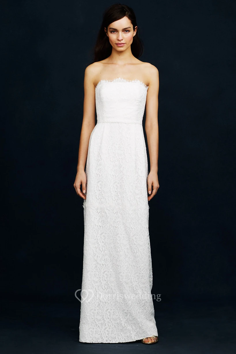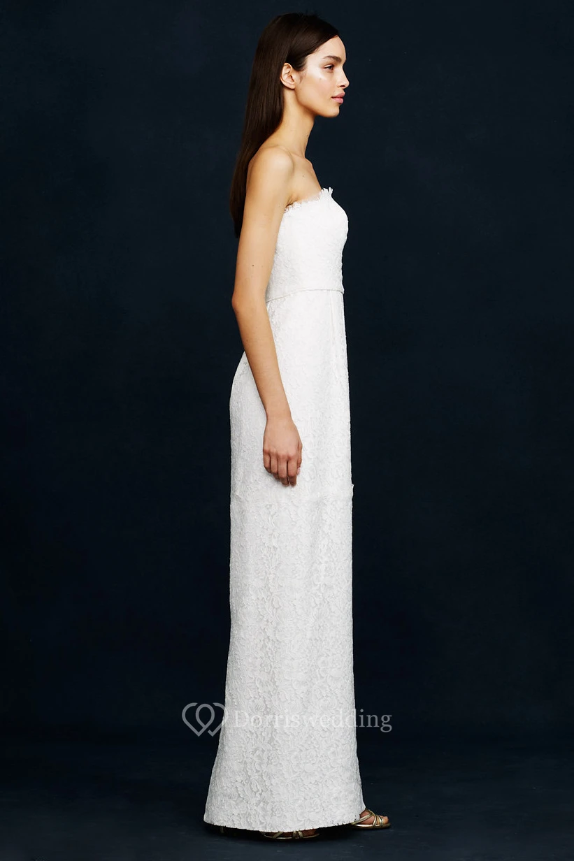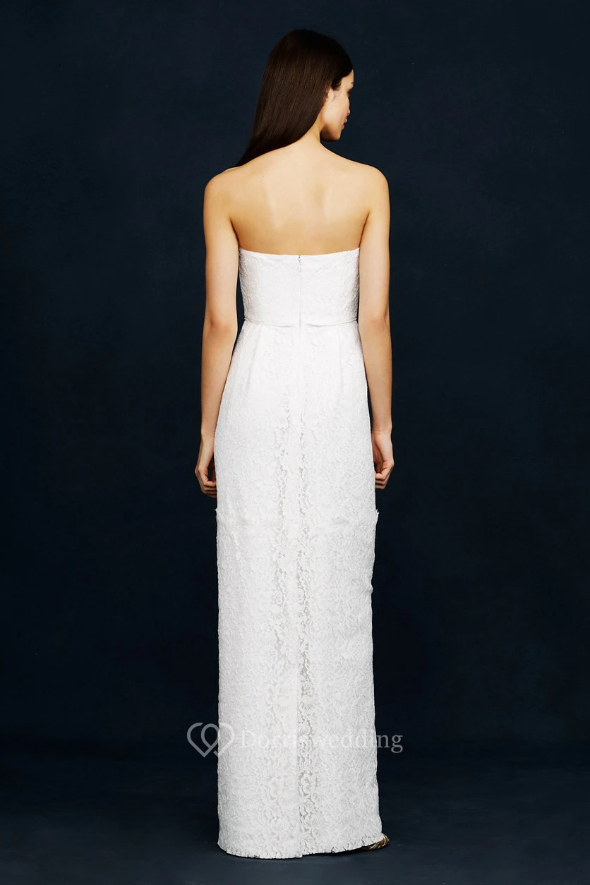 Sheath Long Sleeveless Strapless Lace Wedding Dress