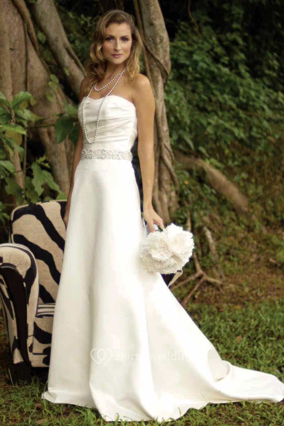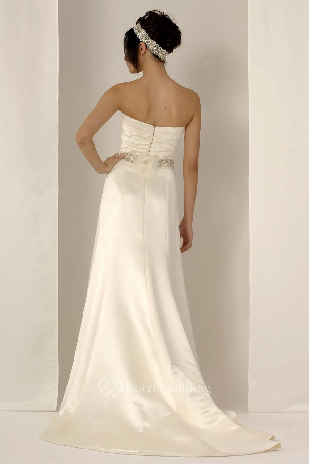 Sheath Long Strapless Satin Wedding Dress With Waist Jewellery And Zipper