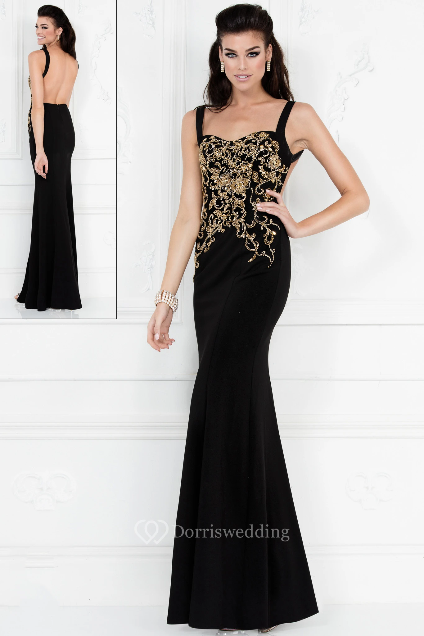 Sheath Long Straps Sleeveless Jersey Backless Dress With Beading