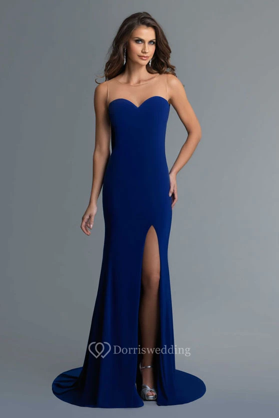 Sheath Long Sweetheart Sleeveless Jersey Illusion Dress With Split Front