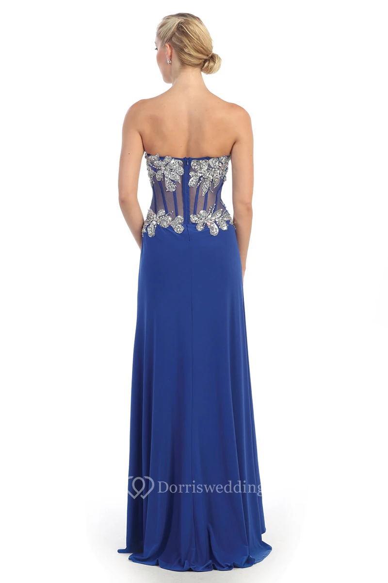 Sheath Long Sweetheart Sleeveless Jersey Zipper Dress With Split Front And Beading