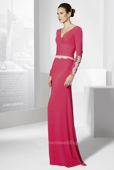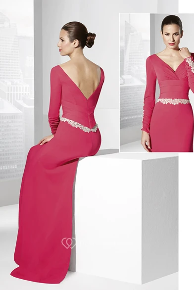 Sheath Long V-Neck Long-Sleeve Jersey Prom Dress