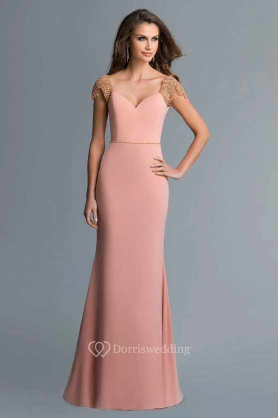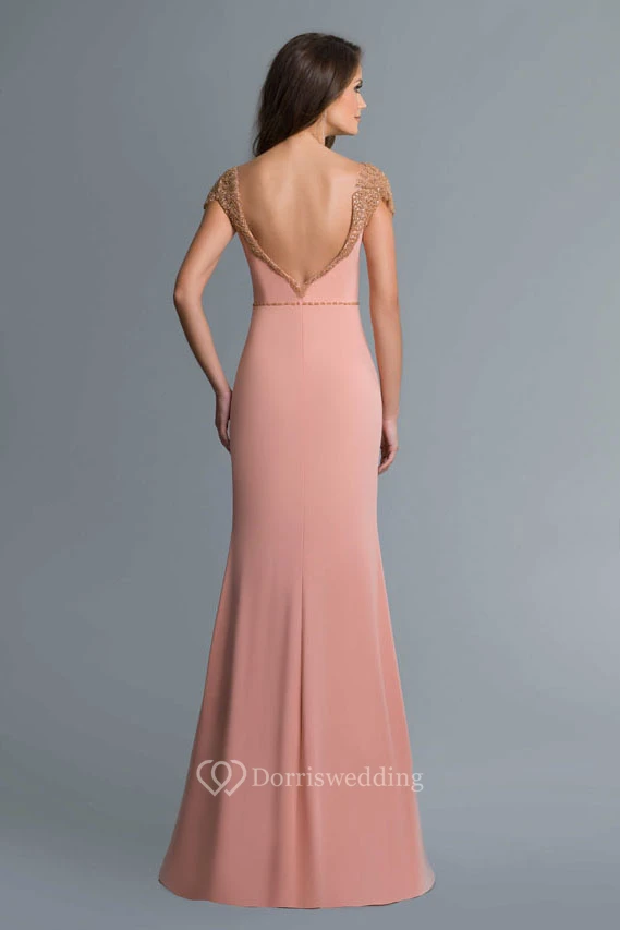 Sheath Maxi Cap-Sleeve Jersey Deep-V Back Dress