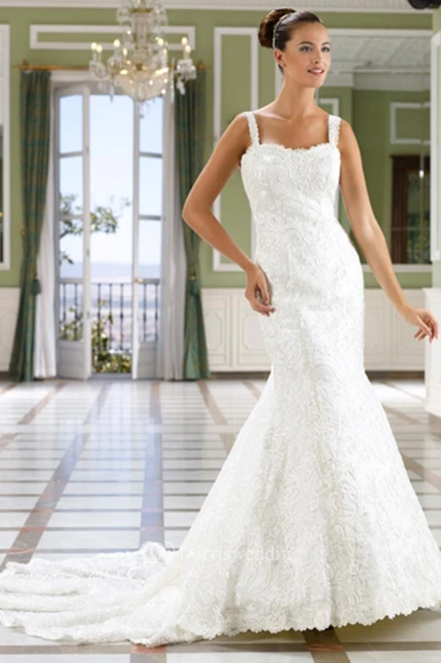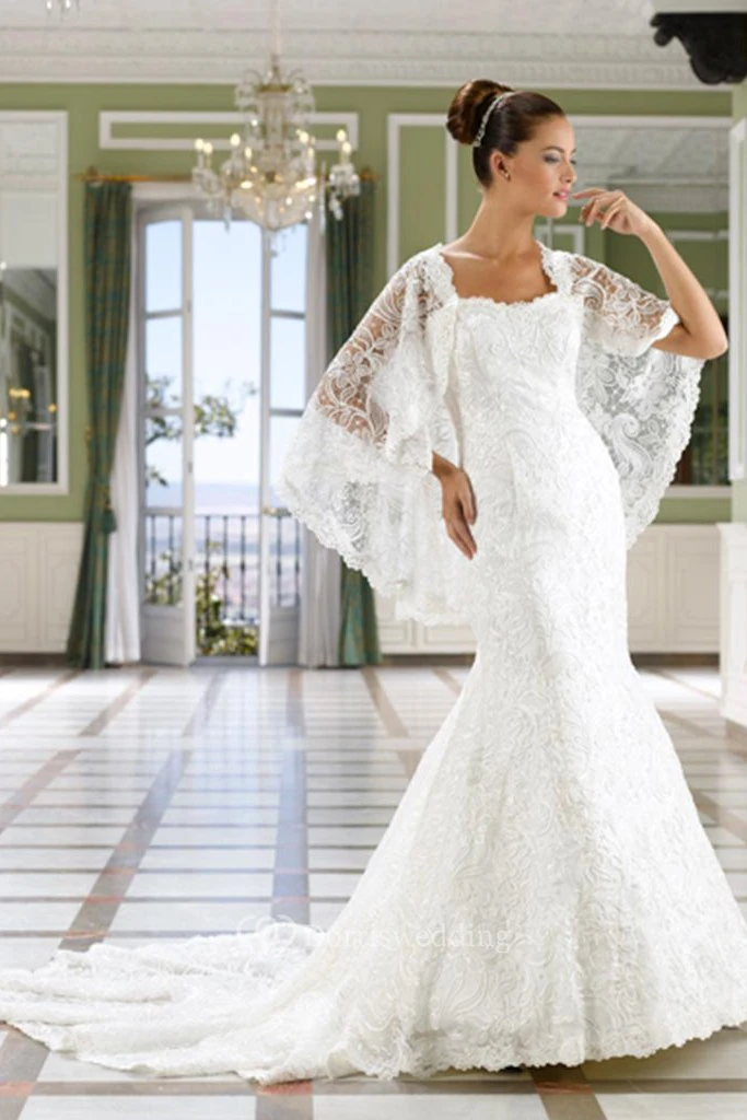 Sheath Maxi Caped Sleeveless Lace Wedding Dress With Court Train And Low-V Back