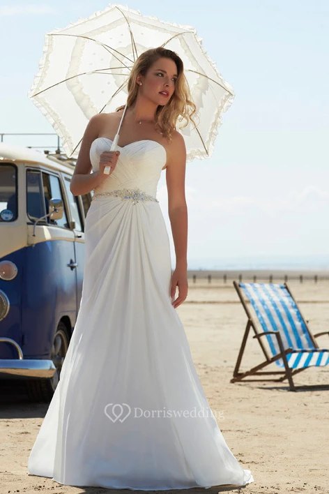 Sheath Maxi Criss-Cross Sweetheart Sleeveless Chiffon Wedding Dress